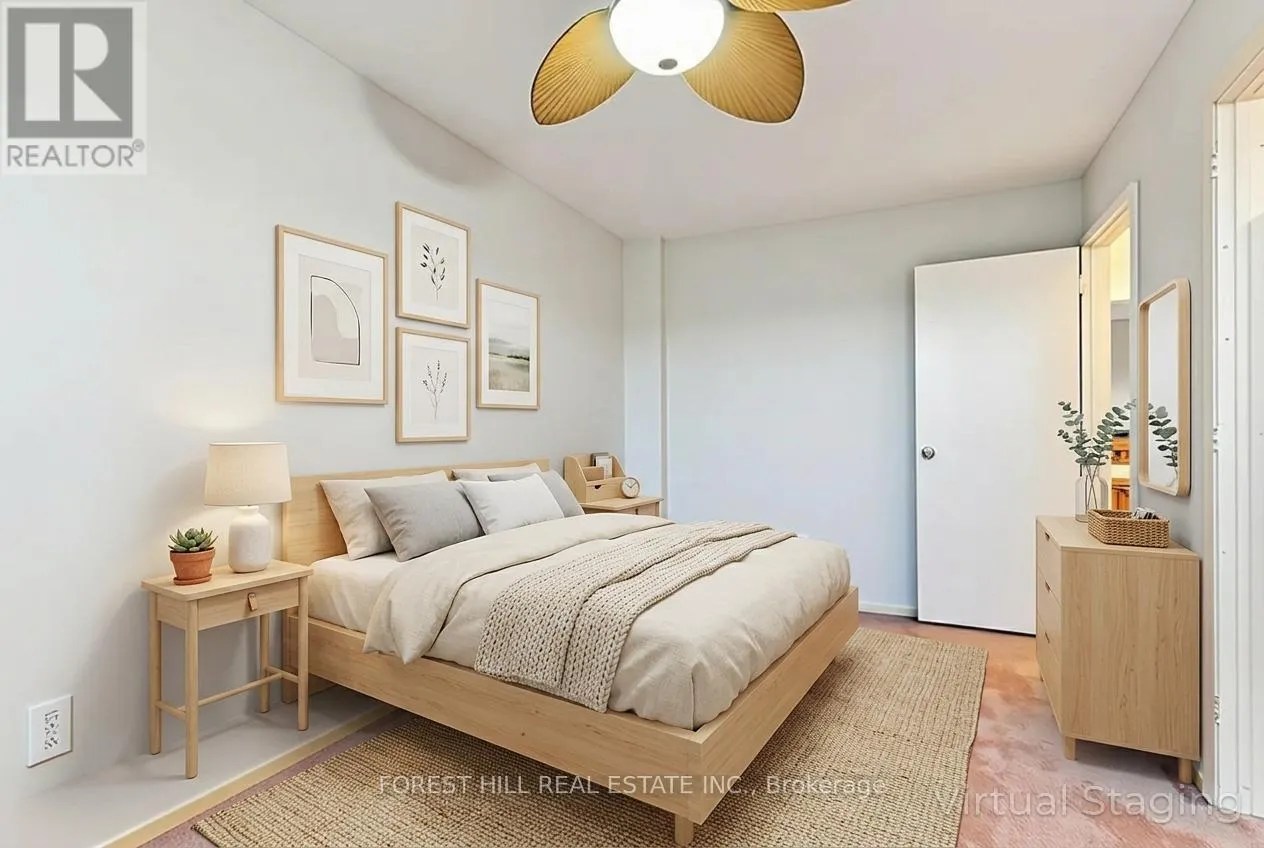 Walk out to a spectacular backyard oasis with mature trees and greenery. This picturesque setting is perfect for gardening, BBQ's and outdoor gatherings. Special features include a sun-filled living and dining area along with size-able and south-facing bedrooms. The master bedroom showcases his/her built-in expansive closets and organizers. Other features include a modern and beautiful eat-in kitchen with plenty of cabinet space, double sinks, granite countertops and newly painted solid wood cabinets and drawers (Jan 2025), two upgraded newly painted (March 2026) bathrooms with ceramic tile flooring and hardwood floors in the main living areas and primary bedroom. Other updates include new floor tiling in the ground floor (Aug 2025), new roof, furnace, central air conditioning, circuit breaker panel, patio door, stainless steel dishwasher, washer and dryer, light fixtures, driveway and much more. For added safety, the property is equipped with three motion sensor security cameras and carbon monoxide detectors. This gorgeous home is surrounded by scenic trails and parks, with lawn care and snow removal services for easy living. Conveniently located near all amenities such as Fresh Co, Fairview mall, a hospital, public schools, Seneca College, Don Mills Subway and Highways 401/404. Don't miss this incredible opportunity to own this exceptional and prestigious home! MAINTENANCE FEES cover a wide range of services. (id:27476)