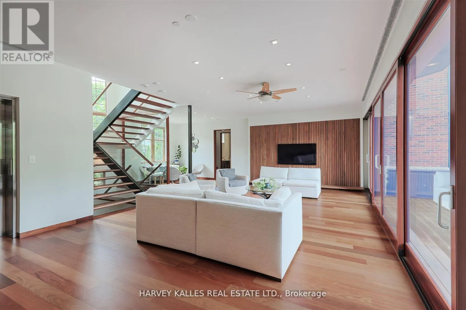Accessibility is a key feature, with snow melt for the front porch, steps, ramp and driveway, a commercial 4x6 ft elevator, and 4 ft wide hallways to ensure effortless movement throughout the residence.The ground floor features a bright, open-plan living area that seamlessly integrates the chefs kitchen, dining, and living spaces, extending to a partially covered upper deck with a 17ft wide opening. A heated 3-car garage is cleverly positioned at the side of the house.The primary retreat is where luxury meets tranquility, featuring two generous walk-in closets and two ensuites one complete with a massage room and whirlpool tub offering tree-top views. Two additional spacious bedrooms, each with walk-in closets, share a thoughtfully designed bathroom suite with dual sinks, ample storage, and a separate area for added privacy. The oversized fourth bedroom also includes its own ensuite bathroom and walk-in closet, providing comfort and convenience for family or guests.The ground floor bedroom suite with a Juliet balcony offers a perfect retreat for guests.Venture to the finished lower level, where 10+ ft ceilings create a light and airy ambiance.This expansive space features a wide sliding door leading to the lower deck, ideal for entertaining.With multiple entertainment areas, including a stepped home theatre and sprawling park-like backyard, this home is designed for those who appreciate spacious comfort. (id:27476)