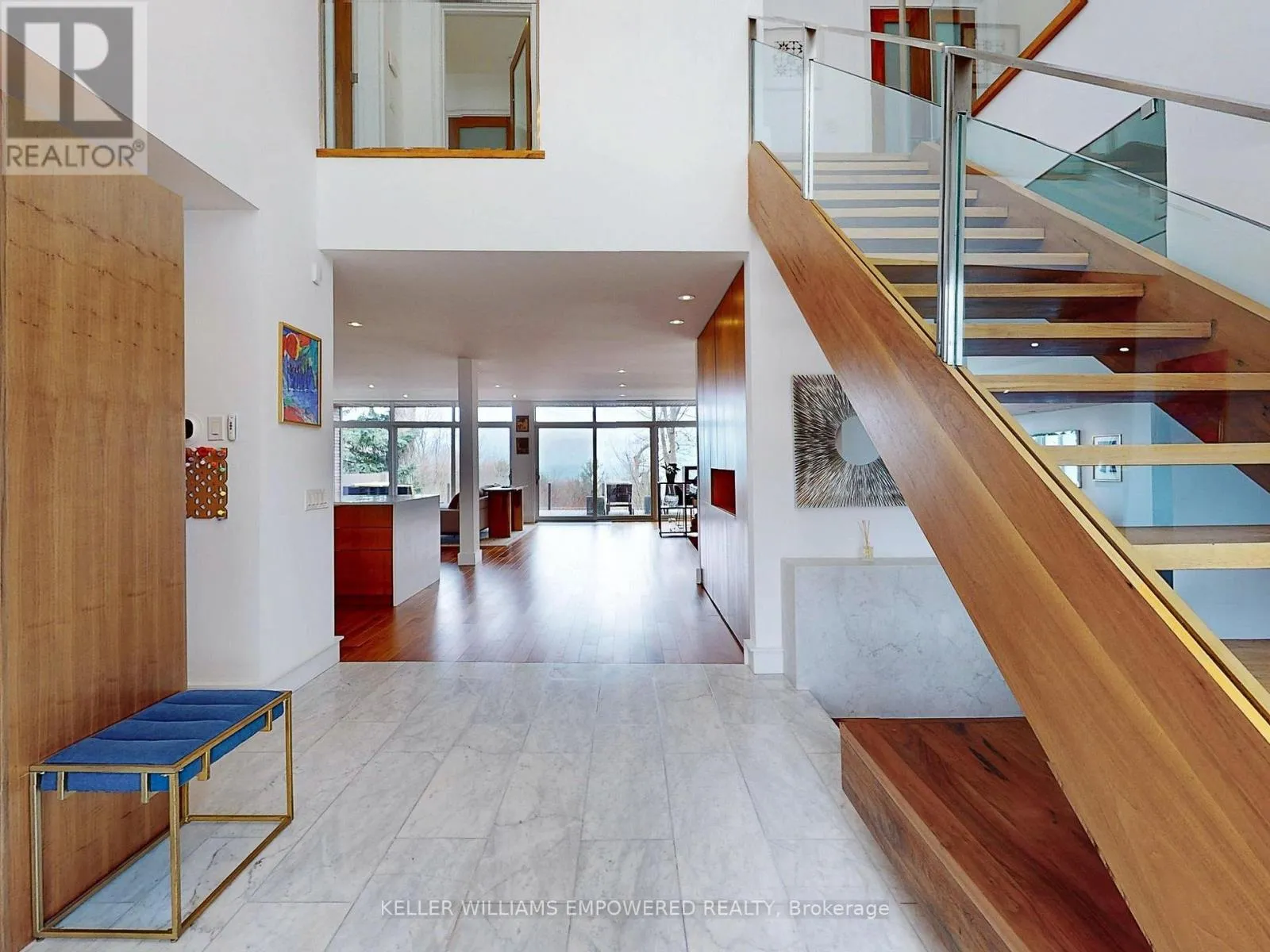 Kingston Road & McCowan Road Discover this exceptional lake-view residence, where contemporary design meets serene natural beauty. This stunning home features a sleek open-concept layout, accented by expansive windows and multiple walkouts, showcasing unobstructed views of Lake Ontario and lush conservation land. From the moment you step into the grand foyer with soaring 18.5-foot ceilings, a statement chandelier, oversized marble slab flooring, a two-storey window, and a custom Walnut guest closet you'll be captivated by the sophisticated details throughout.