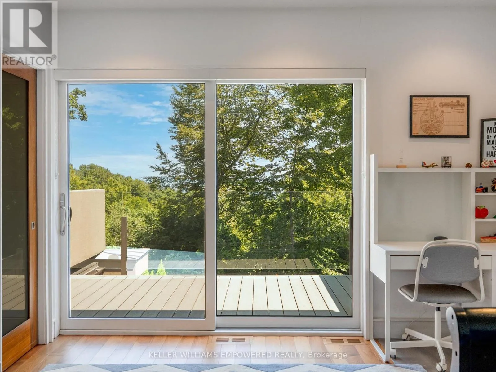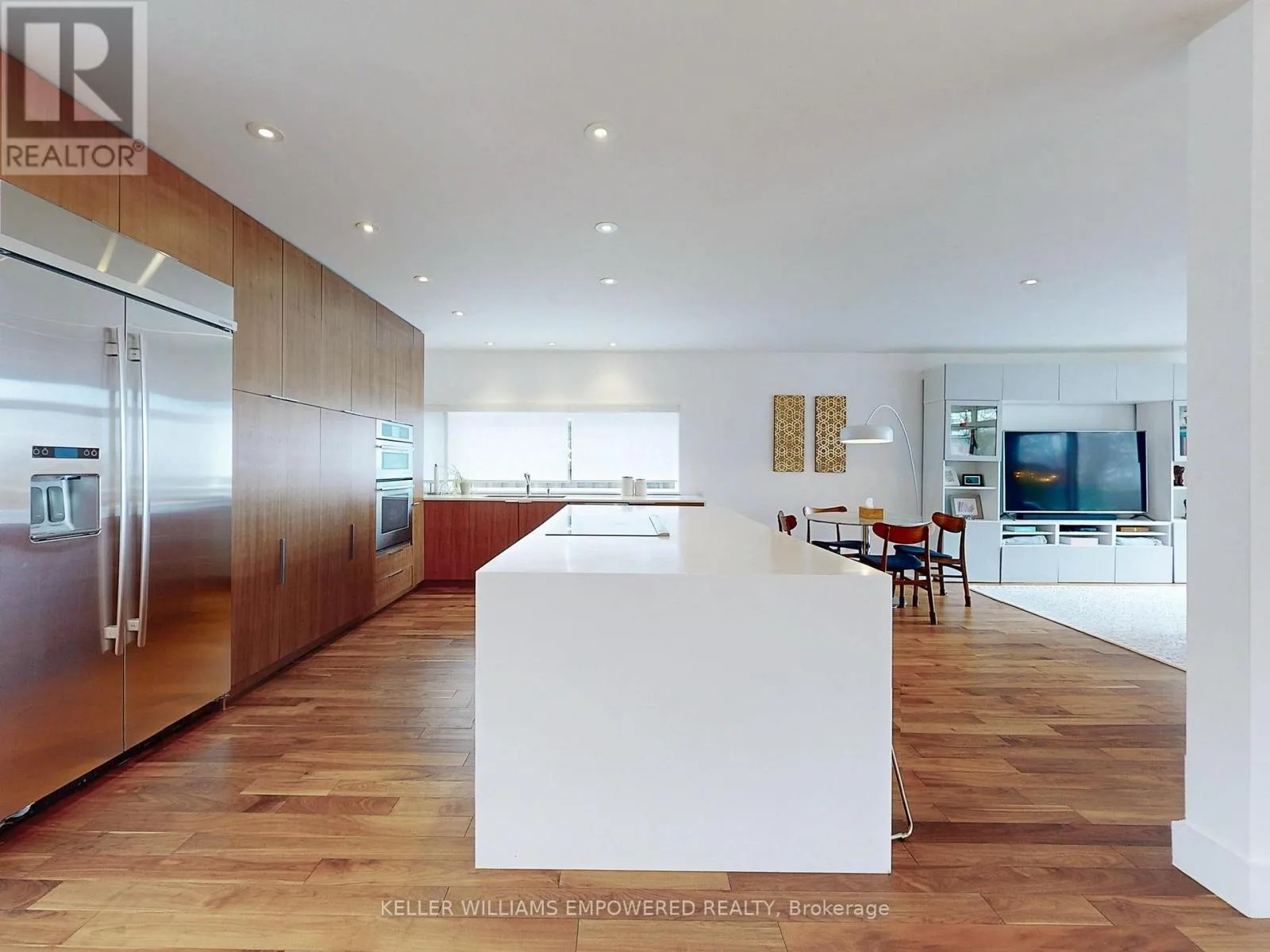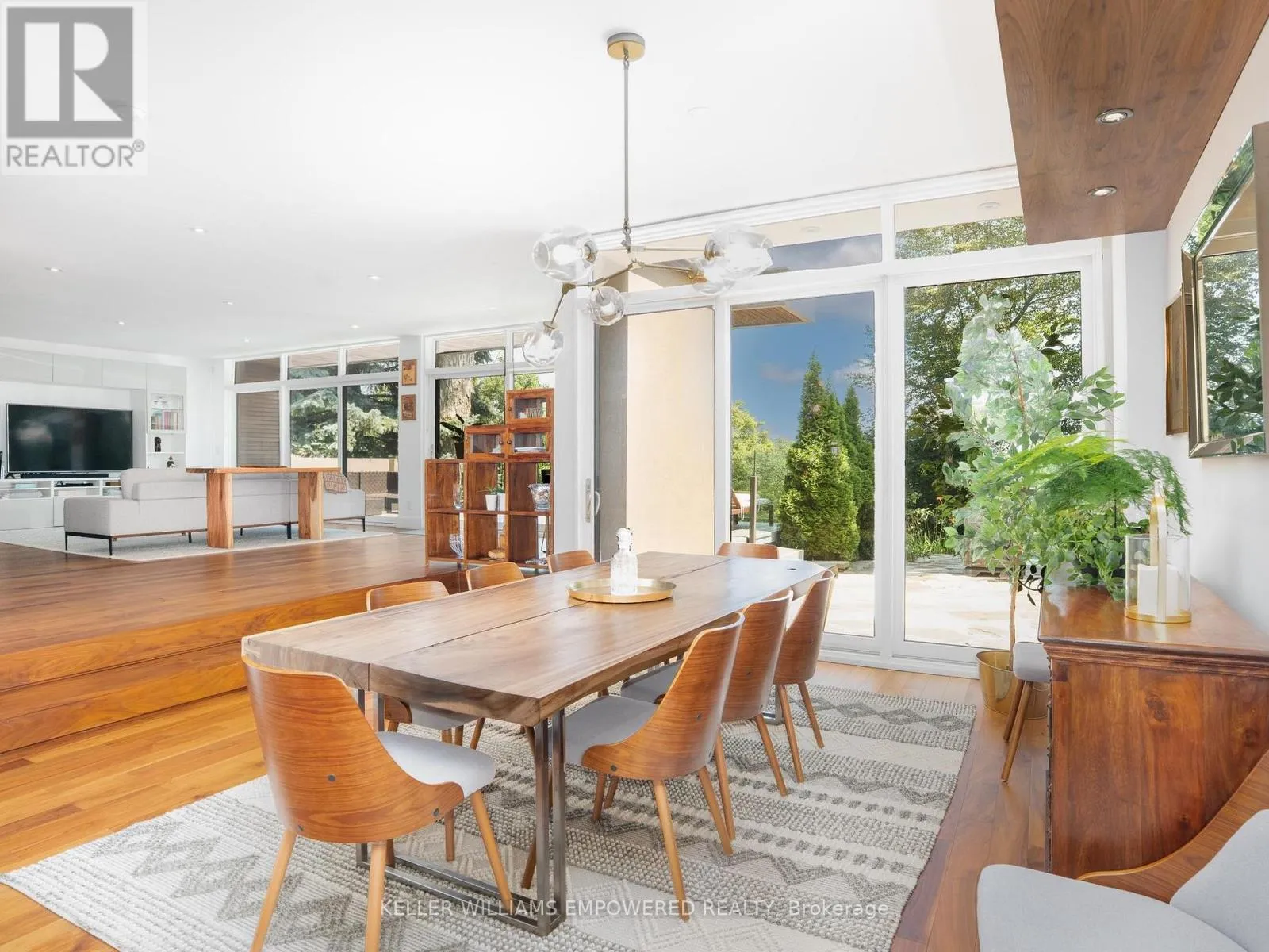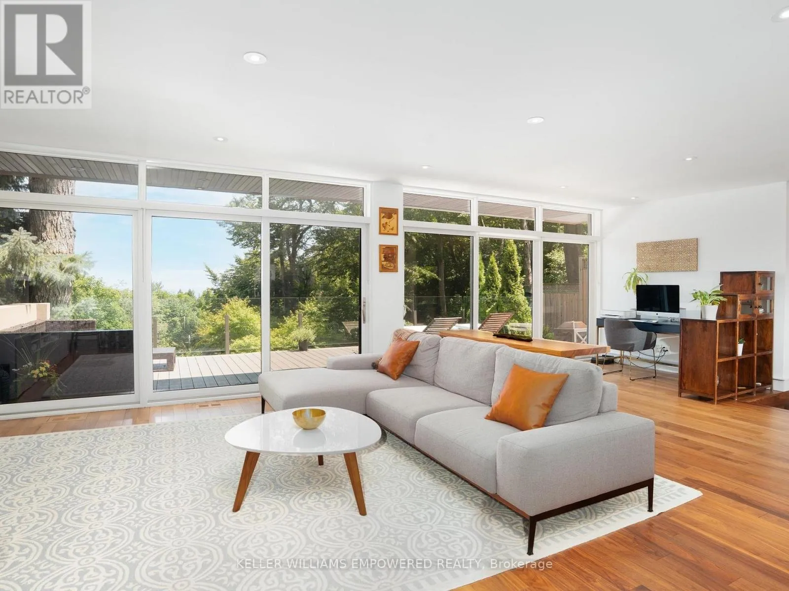 The main level is an entertainers dream, offering a seamless flow between the spacious living, dining, and family rooms, all adorned with pot lights and rich Walnut flooring. The chef-inspired kitchen is the heart of the home, boasting a dramatic waterfall island with Stone countertops, seating for four, and custom pull-out organizers. This space opens directly to multiple outdoor entertaining decks, perfect for hosting or relaxing while enjoying panoramic views. Ascend the striking open-riser Walnut staircase, framed with glass railings and stainless steel handrails, to find a luxurious primary retreat. The serene primary suite offers a private sanctuary, complete with its own balcony, window wall with lake views, a custom dressing room with skylight and extensive cabinetry, and a spa-like ensuite featuring heated floors and serene conservation views. The fully finished walk-out lower level adds even more space to unwind, with a large recreation room featuring heated floors and direct access to the beautifully landscaped rear grounds. Enjoy quiet evenings around the firepit or take advantage of the convenient access to the upper decks, seamlessly connecting indoor and outdoor living. This exceptional property offers the rare combination of modern luxury, privacy, and spectacular natural surroundings perfect for those who love to entertain or simply soak in the beauty of the outdoors. Video and audio may be on during viewings. (id:27476)