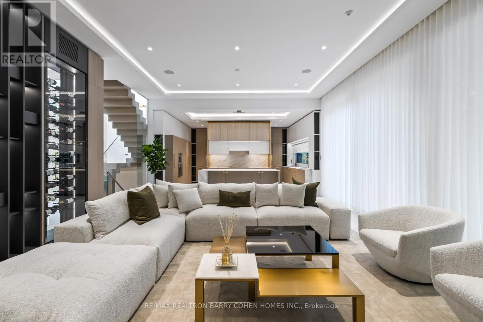 The Interior Combines Soaring Ceilings w/ Floor-To-Ceiling Windows Throughout To Create An Unmatched Sense of Openness and Grandeur. The Main Floor Immediately Greets You With Premium Finishes That Continue Throughout The Entire Property. Bespoke Lighting, Automated Window Coverings, And A Breathtaking Oversized Sliding Glass Wall Allow The Spacious Family Room To Flow Seamlessly To The Outdoor Dining Area Overlooking The Heated Pool. The Stunning Chef's Kitchen With Premium-Grade Appliances, Striking Wine Display, Dining Room And Lounge Complete The Main Floor's Meticulously Engineered Open Plan Layout To Make This Property The Perfect Place To Relax And Entertain Guests. A Modern Concrete Staircase And Central Elevator Service Every Level In The Home Including The Guest Suite Level, 2nd Floor, Mudroom Mezzanine, and Lower Level. Hotel Inspired Primary Retreat With A Wet Bar, Sprawling Dressing Room, Luxurious 7-Piece Ensuite and Private Terrace Overlooking The Rear Garden. Three More Spacious Bedrooms w/ Ensuites Plus A Fully Equipped Laundry Room Complete The 2nd Floor. Guest Level Includes One Bedroom with Ensuite & Den/Office. The Lower Level Has Been Designed And Executed With The Same Level Of Detail As The Rest Of The Residence To Include In-Home Staff Suite, Exercise Room W/Ensuite, Rec Room W/A Full Bar, Theatre, And Convenient Pool Change Room With Walkup To The Rear Garden. Control4 Automation Adds To The Home's Luxurious Functionality. Ideally Located Near Top-Ranked Schools And A Short Drive From Yonge St and HWY 401 For Effortless Commuting. (id:27476)