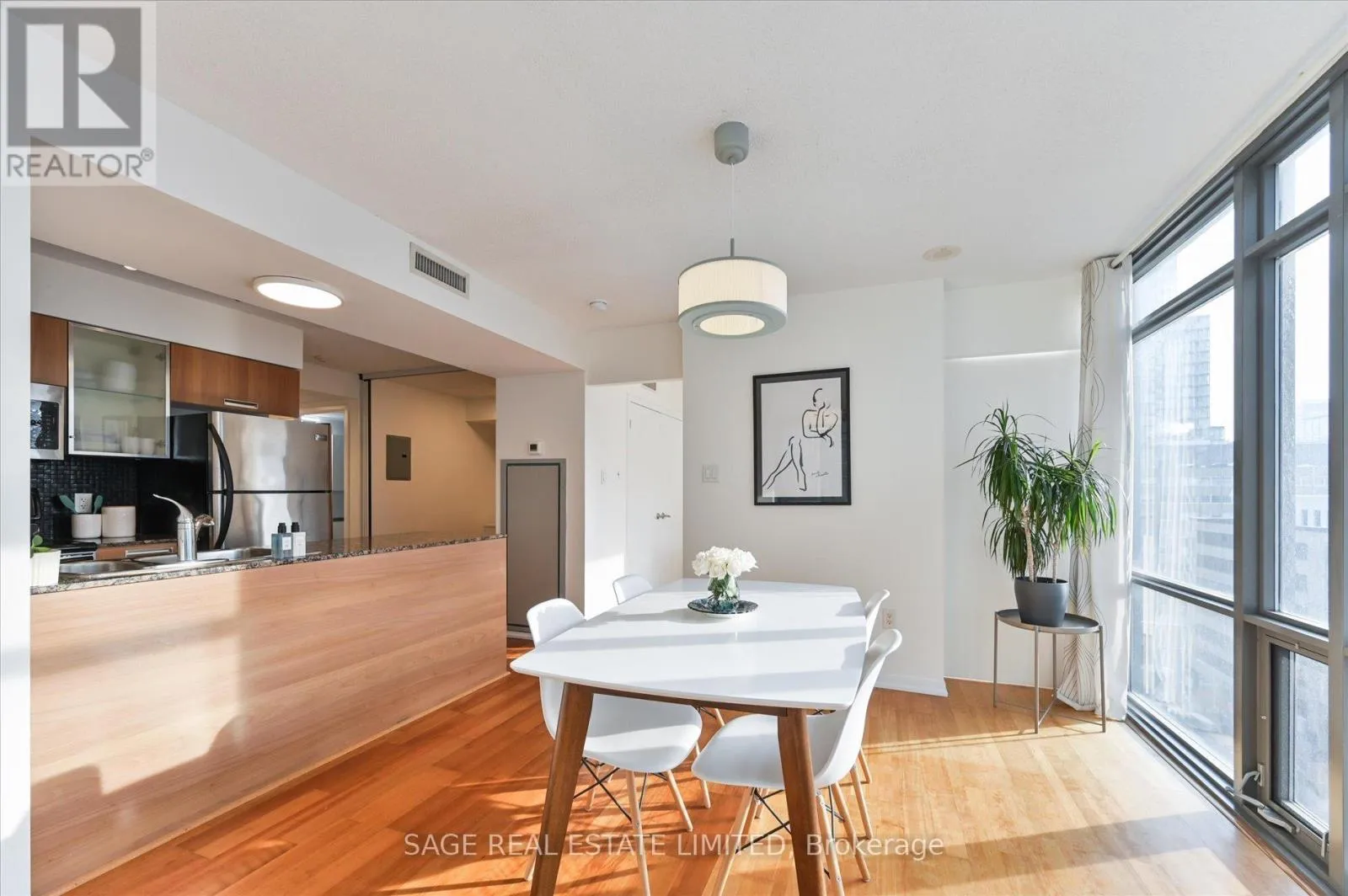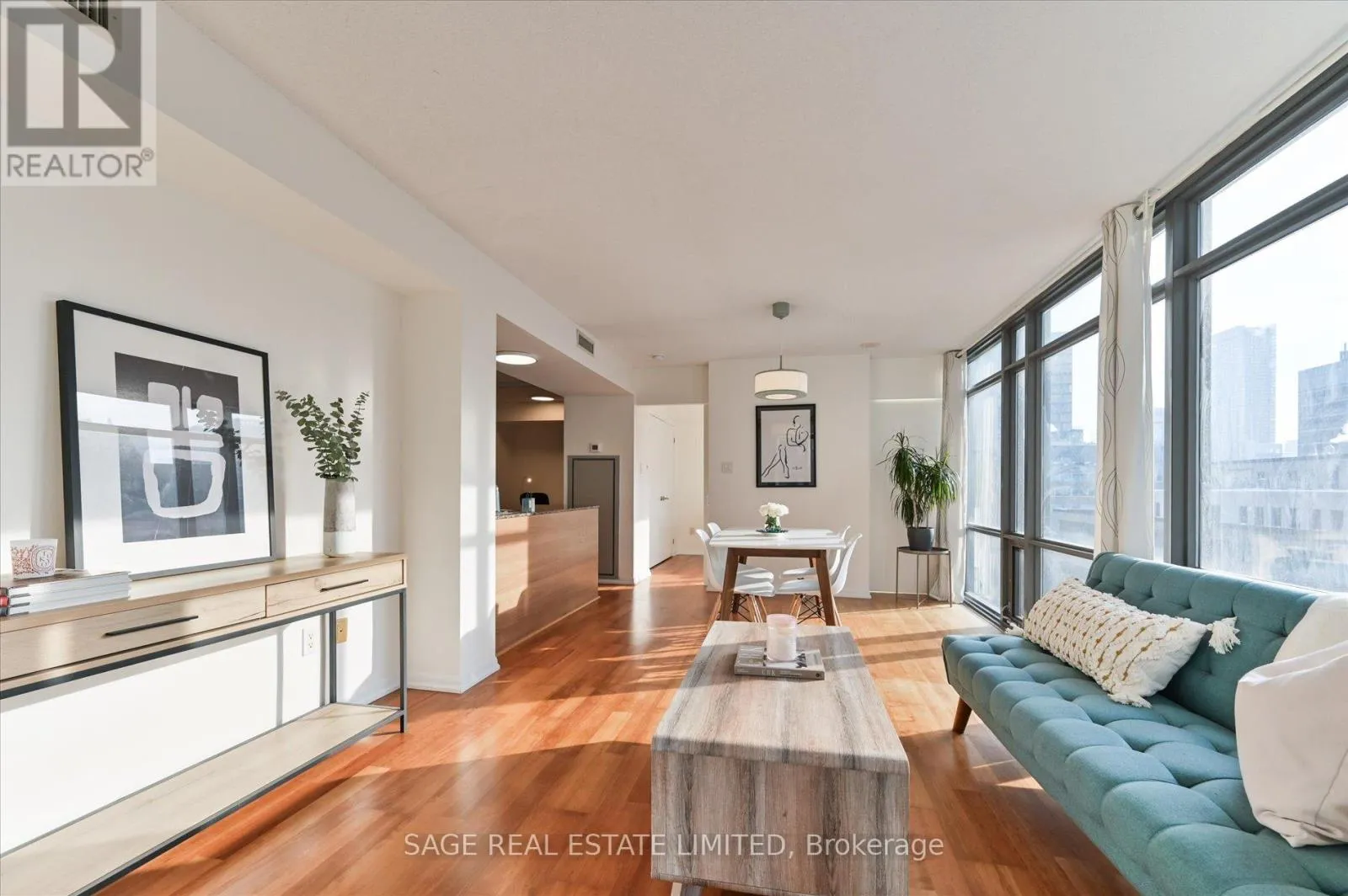 Cross Streets: Bay and College. ** Directions: North of College and West of Bay St. Welcome to this exceptional 1-bedroom plus den residence at Murano, offering one of the most desirable locations in downtown Toronto and surrounded by unbeatable amenities. this sun-filled northwest-facing corner suite offers approximately 656 sq. ft. of open-concept living and dining space with laminate flooring throughout.