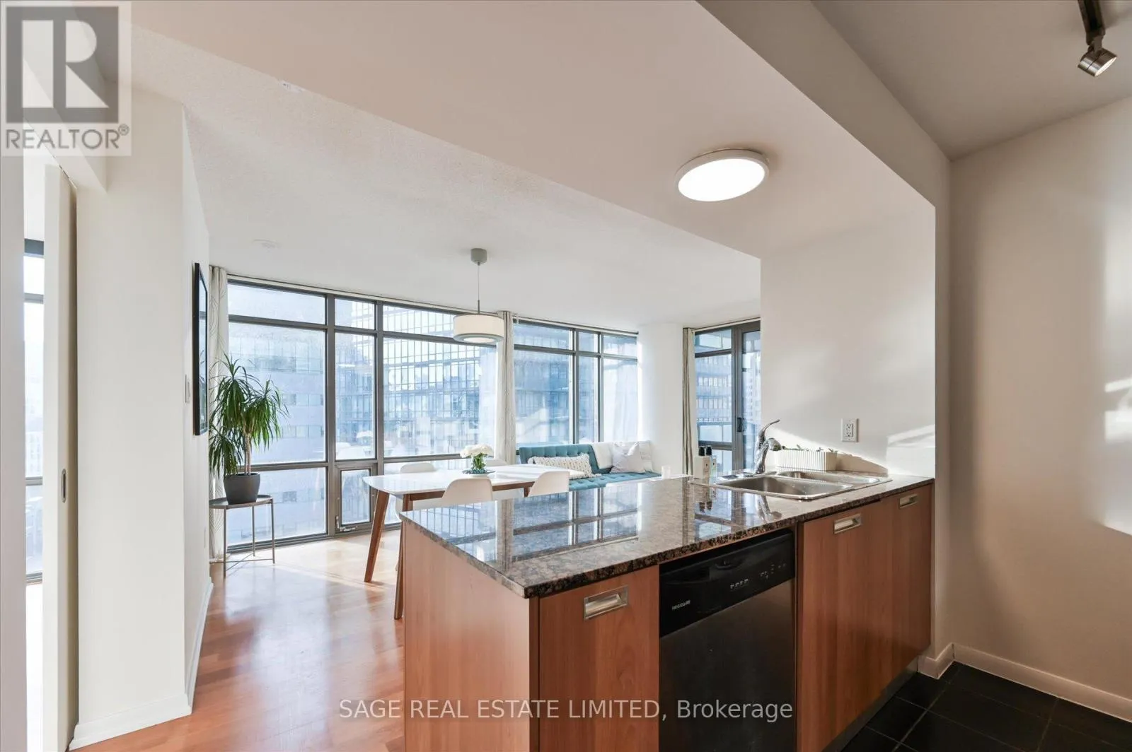 Featuring floor-to-ceiling wraparound windows, a spacious den (potentially a bedroom), and a highly functional layout, the unit is flooded with natural light. The generous bedroom includes with double closet, while the expansive balcony showcases stunning city views. Beautifully maintained and truly a standout opportunity. Parking and locker included. (id:27476)