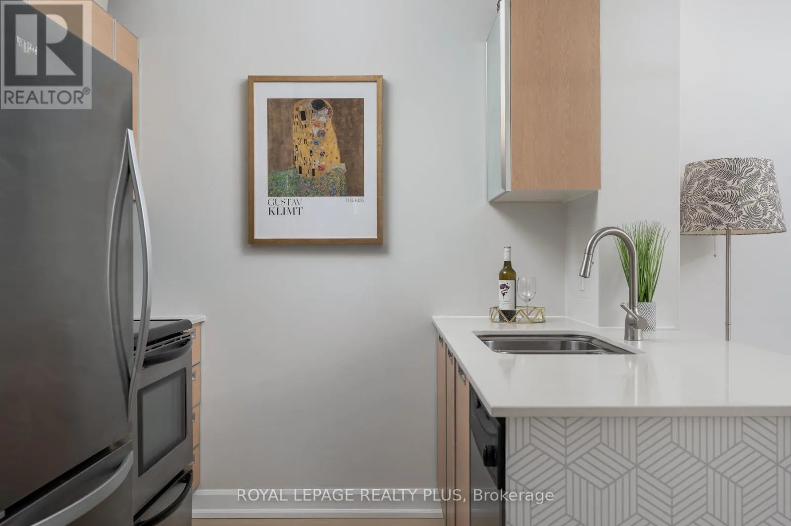 Being here creates a feeling of warmth and calm, exactly what you would hope for from your own little retreat. A peaceful ambiance all to yourself on the quiet side of the building. Featuring luxury vinyl floors updated in 2025 with upgraded baseboards, open concept kitchen with Caesarstone counters, stainless steel appliances, custom lighting, flat ceilings and solid wood doors. Freshly painted throughout. Elegant bathroom renovation in 2020 boasts cultured marble counters and high end finishes. Spacious den can be used for separate dining room, office or space for guests. Includes parking and locker. Maintenance fees include Cable TV, Internet, Heat, AC, Water and Visitor Parking. Great amenities including large party room with balcony (renovated in 2024 along with hallways), gym, library, and roof top garden for stargazing on those warm summer nights! New chiller (AC). This building is well maintained, quiet and private, and backs onto a residential neighbourhood. Enjoy the treed view! Steps to shops, cafes, lively restaurants as well as the Kingsway's boutique sand parks. Move in and enjoy an effortless urban lifestyle. (id:27476)