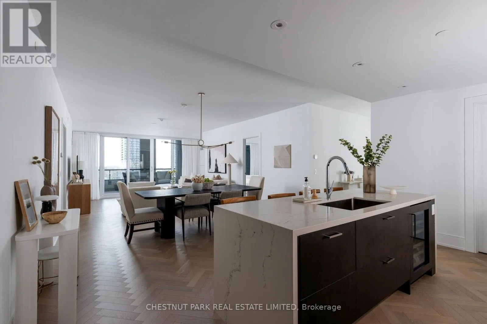 Spadina Ave & Wellington St Elevate your lifestyle in this exceptional 2 Bedroom + Den, 2.5 Bathroom suite at The Well Signature Series by Tridel, An exclusive 98 suite building. A 342 sq ft balcony spans the full width of the suite, extending the living space and showcasing stunning south-facing city and lake views. The suite features herringbone hardwood floors, floor-to-ceiling windows, and upgrades including custom millwork in the walk-in closets and laundry/pantry.