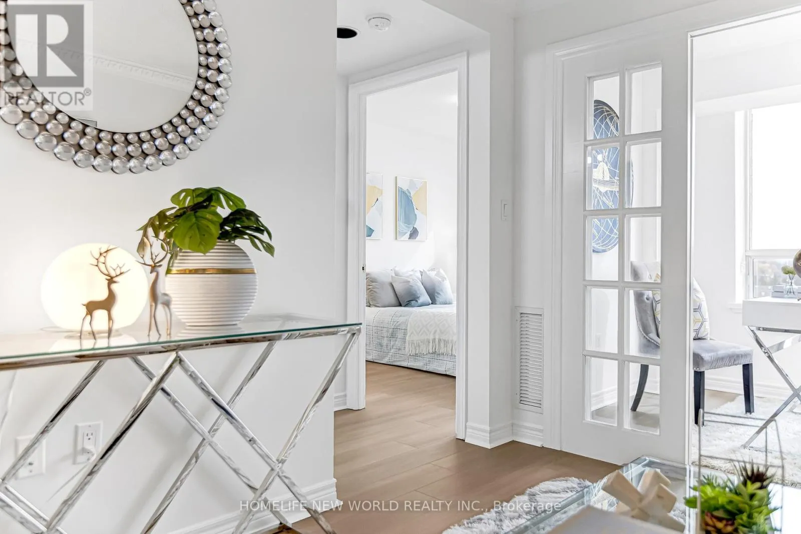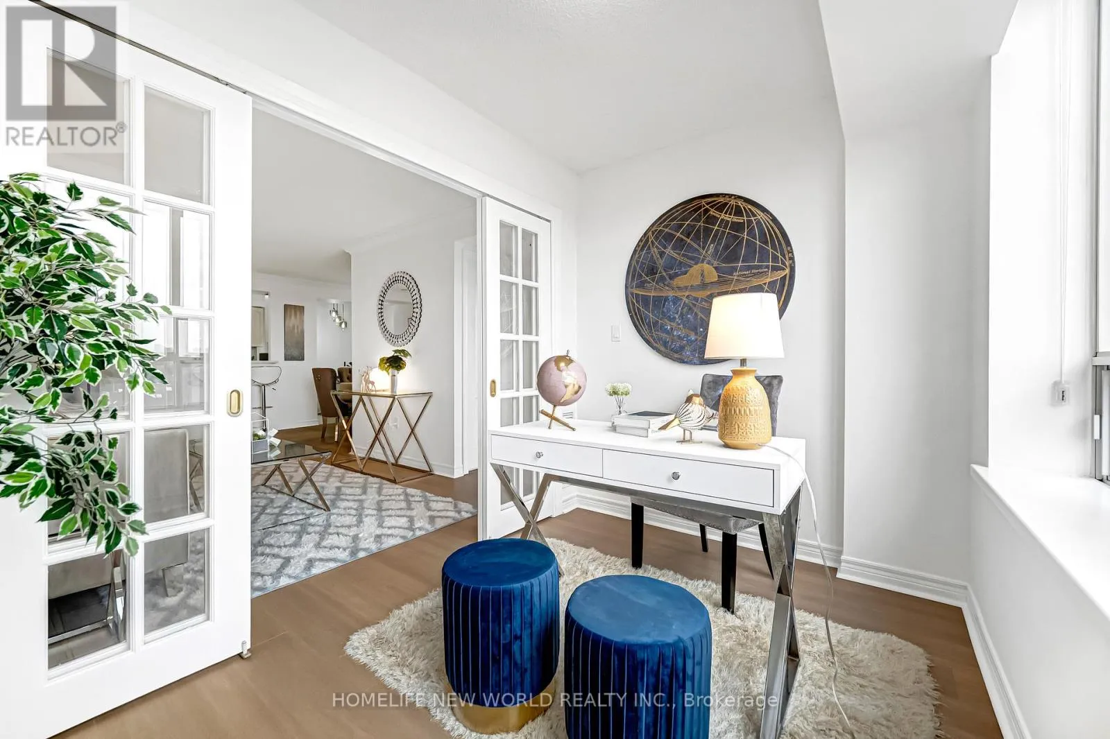 1,076 sq.ft.) features a functional open-concept layout with unobstructed east-facing views, offering beautiful sunrises and abundant natural light throughout. The large living and dining area is ideal for entertaining.Thoughtfully updated with brand new flooring, fresh paint, new light fixtures, and a partially renovated second bathroom, this home showcases an exceptional and efficient floor plan. The versatile den and solarium can be used as a home office or third bedroom, providing flexible living space. The primary bedroom features a walk-in closet and private ensuite, complemented by generous storage throughout and a sizable laundry room.Located in one of North York's most desirable communities, surrounded by top-ranked schools, parks, transit, and amenities including Mitchell Field Community Centre, this is a rare opportunity to own a well-appointed home in a prime location. (id:27476)