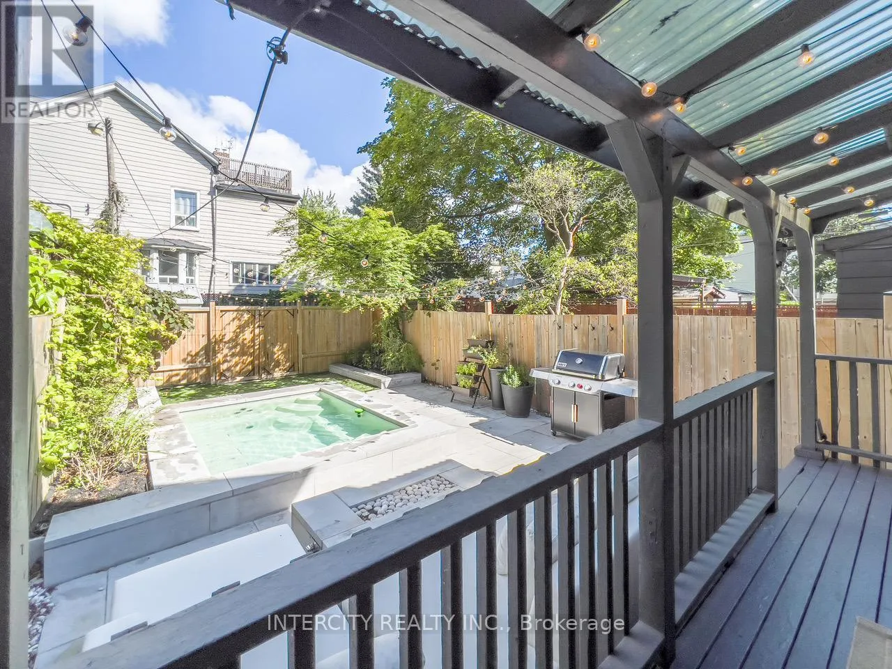 Its classic brick exterior, professional low-maintenance landscaping and generous porch & deck are to be experienced. Inside, you'll find a thoughtful open plan designed to feel both expansive yet intimate. An airy main floor boasts of 9ft high smooth ceilings, potlights thru-out with a flow that makes living & entertaining effortless. Every finish from the cabinetry, wide hardwood, and laminate floors to the soft neutral palette, evokes to an understated sophistication.Enthusiastic chefs will love how the kitchen is both stylish and functional, featuring a large 8'x3' centre island for generous seating & loads of storage, gas stove, panelled appliances & double floor-to-ceiling pantries with curated open shelving. Step outside thru huge sun drenched patio doors onto a generous afull-width deck with your morning coffee enjoying the tranquility of your private backyard oasis. Make your evenings magical. Bask in the glow of the Living Room gas fireplace or warm up on cool nights by your gas outdoor fire pit. Relax with a soothing dip in a luxurious 7'x9' swim spa year round. Retreat upstairs to the primary bedroom, truly a sanctuary featuring a gorgeous south-facing bay window that is bathed in natural light all day. The fully finished lower level features a rec room, plus a flex-space that can be a home officeor guest bedroom with double windows & 3pc bath. This amazing home offers the perfect work-life-balance: a short 10min. commute to downtown with parks, cafes, artisanal shops, city's best brunch spots,top schools like Riverdale, TTC, Walk 97 or Bike 97 Walk Score! This one checks all the boxes! (id:27476)