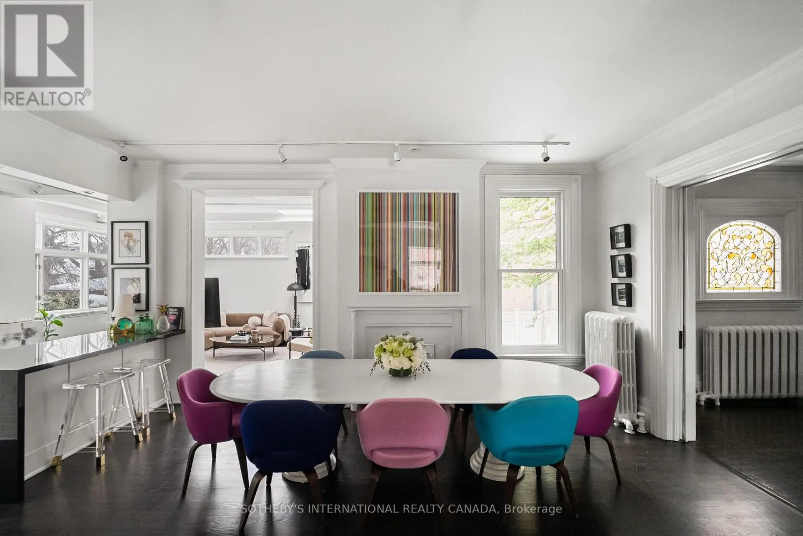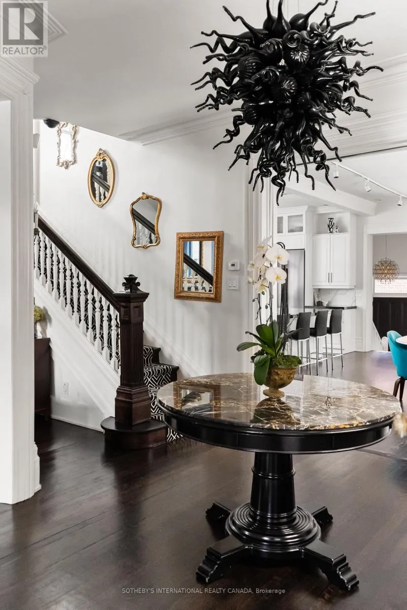 A broad covered porch creates a gracious arrival, inviting you to slow down before stepping inside. The home opens to a grand foyer with high ceilings, rich hardwood floors & subtle architectural detailing. The main floor flows naturally from one space to the next, balancing formal rooms with areas designed for everyday living. The expansive chef's kitchen connects seamlessly to a spacious family room, where ample windows & skylights fill the space with natural light. The formal living room stands as a statement in its own right - offering a quieter, more refined setting. Six bedrooms are thoughtfully arranged across the upper levels. The 2nd level is defined by a generous & private primary suite, featuring walk-in closets & a bright ensuite. Two additional bedrooms on this level have beautiful bay windows, while a well-proportioned laundry room adds everyday convenience. The 3rd level introduces 3 more bedrooms & a well-appointed family bath, offering flexibility for family or work-from-home needs. The lower level provides a generous rec room & additional versatile rooms suited to fitness, guest accommodations or creative use. Storage is thoughtfully incorporated throughout, ensuring both function & ease. A walk-up to the backyard brings natural flow between indoors & out, while a large mudroom provides practicality for daily life. Outdoors, the property reveals a spectacular private garden. Expertly landscaped, the grounds feature mature trees, vibrant perennials & a winterized pond, creating a peaceful escape from the city. Equally exceptional is the 3-car detached garage & 3-car private drive- a seldom-found feature in Summerhill. (id:27476)
