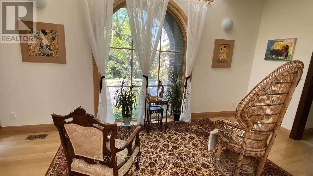 Well built for the ages on concrete columns and steel beams and clad with custom cut Muskoka granite on three sides and majestic, beautiful brick on the front. White Oak floors and stairs with an elevator that has windows overlooking the street and serves all 3 floors. Large number of windows High 7 ft solid wood crafted doors including an antique ornate door with carvings on the main floor. Open main floor with 35 ft long, 800 sq ft living space merging into enormous 650 sq ft dining, an exquisite granite counter kitchen and 5 large floor-to-ceiling window sunroom space with floor to ceiling windows and twin decks on main floor and each of the upper floors. Natural light swept with enormous, beautiful Pella windows and half a dozen skylights. Large, wide corridors. High ceilings in a warm, enjoyable home with 5 mature trees and a tandem garage. There are three fireplaces. Do not miss out! (id:27476)
