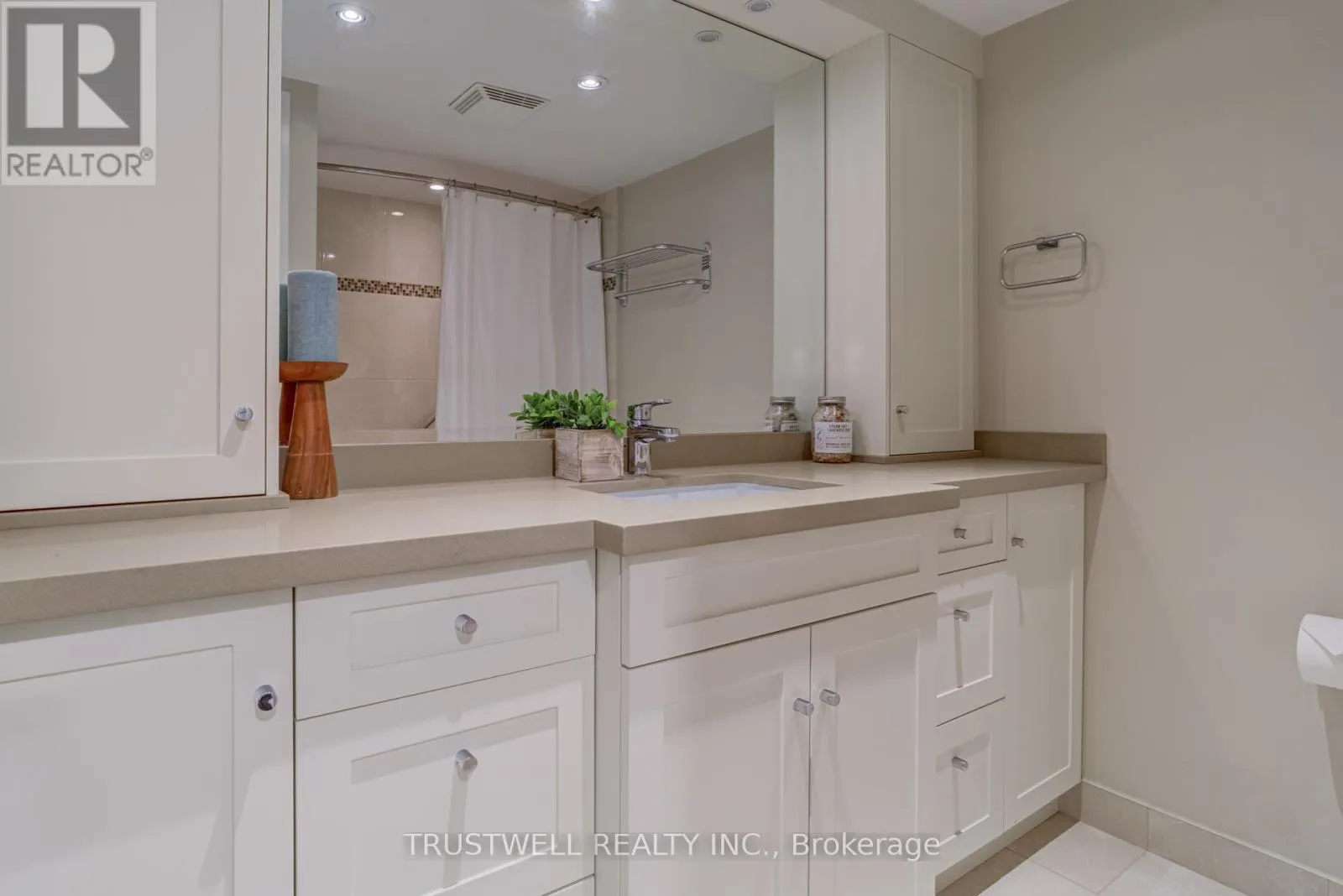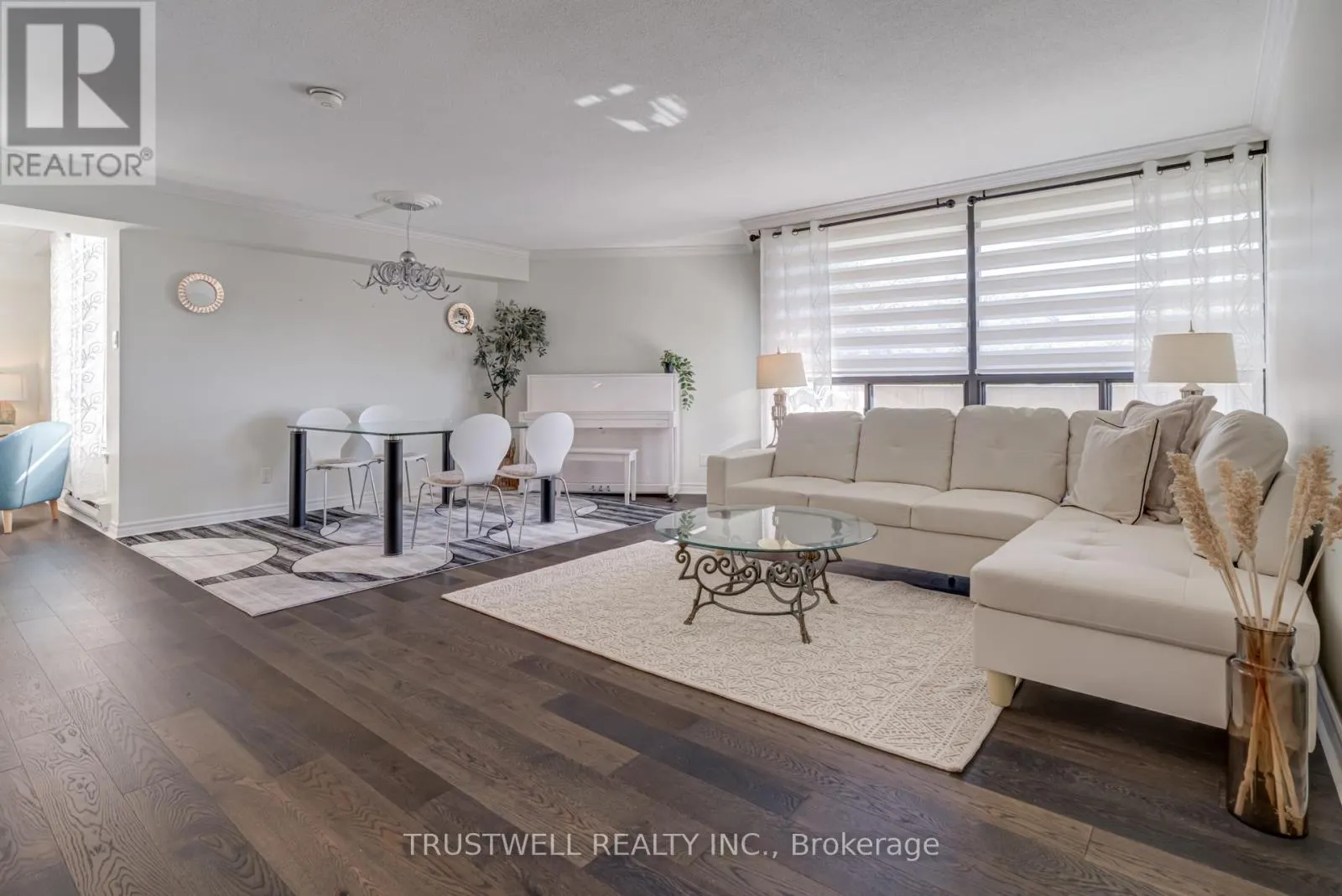 Burnhamthorpe/Mill Welcome to The Masters Markland Woods Highly Sought-After Resort-Style Community! This beautifully updated 3-bedroom, 3-bathroom corner suite offers over 1,700 sq. ft. of living space across a unique up-split layout that feels more like a detached home. Enjoy private west-facing views and an open-concept design, perfect for entertaining. Highlights include: Two large balconies (BBQs allowed), Three fully renovated bathrooms, Crown moulding in both the living and dining rooms, Separate laundry room with storage plus custom shelving throughout.