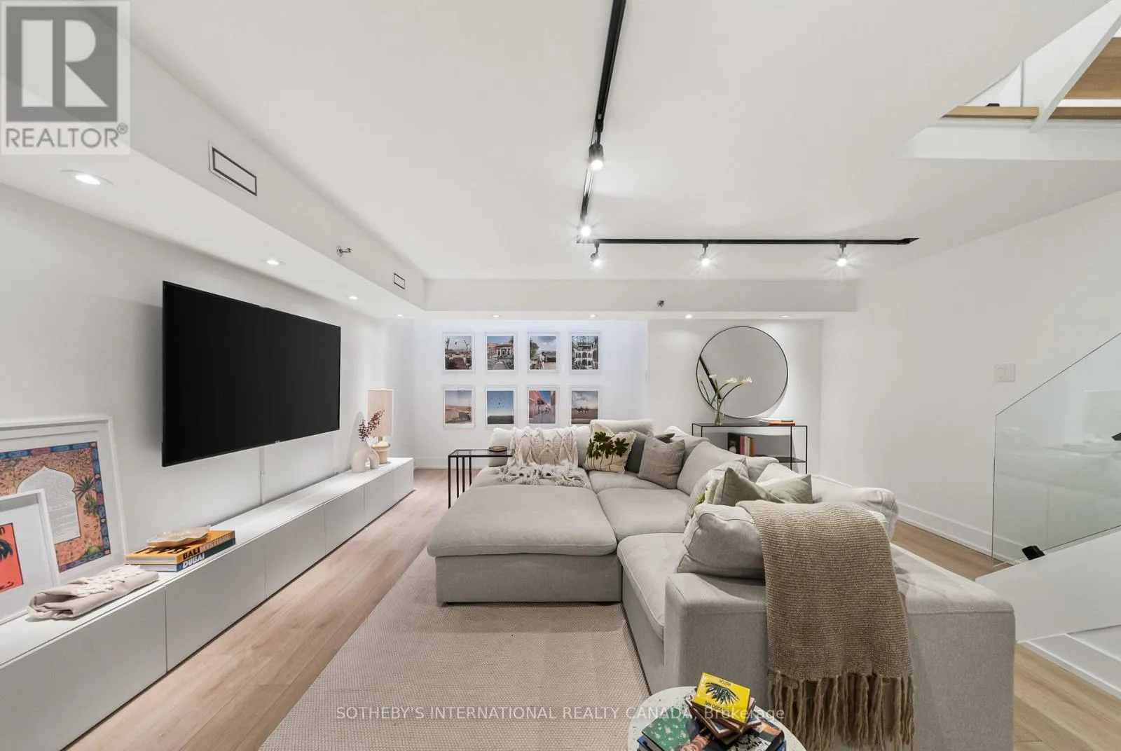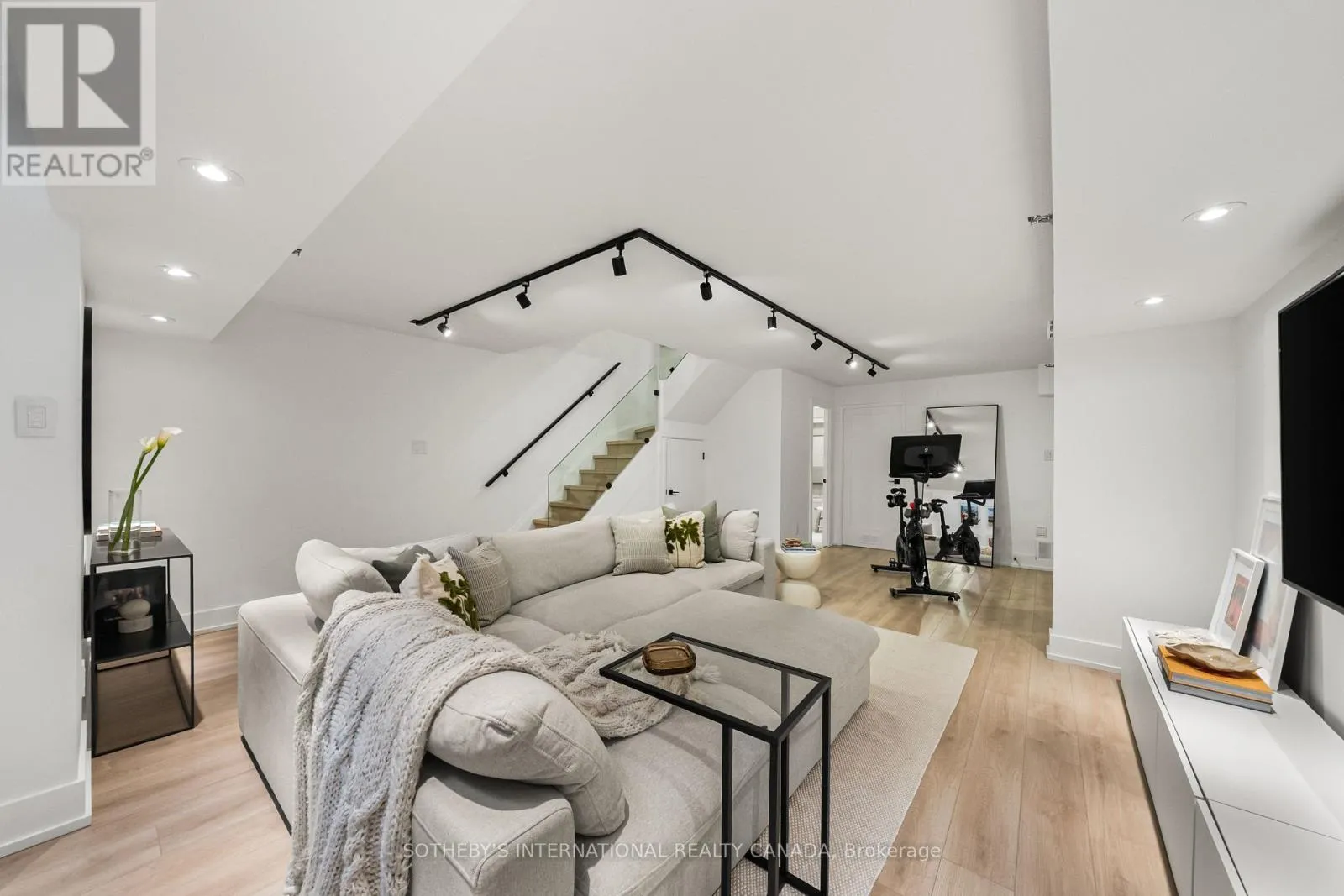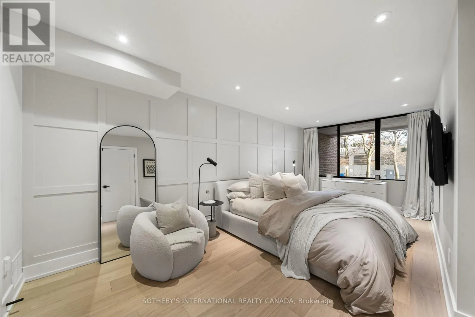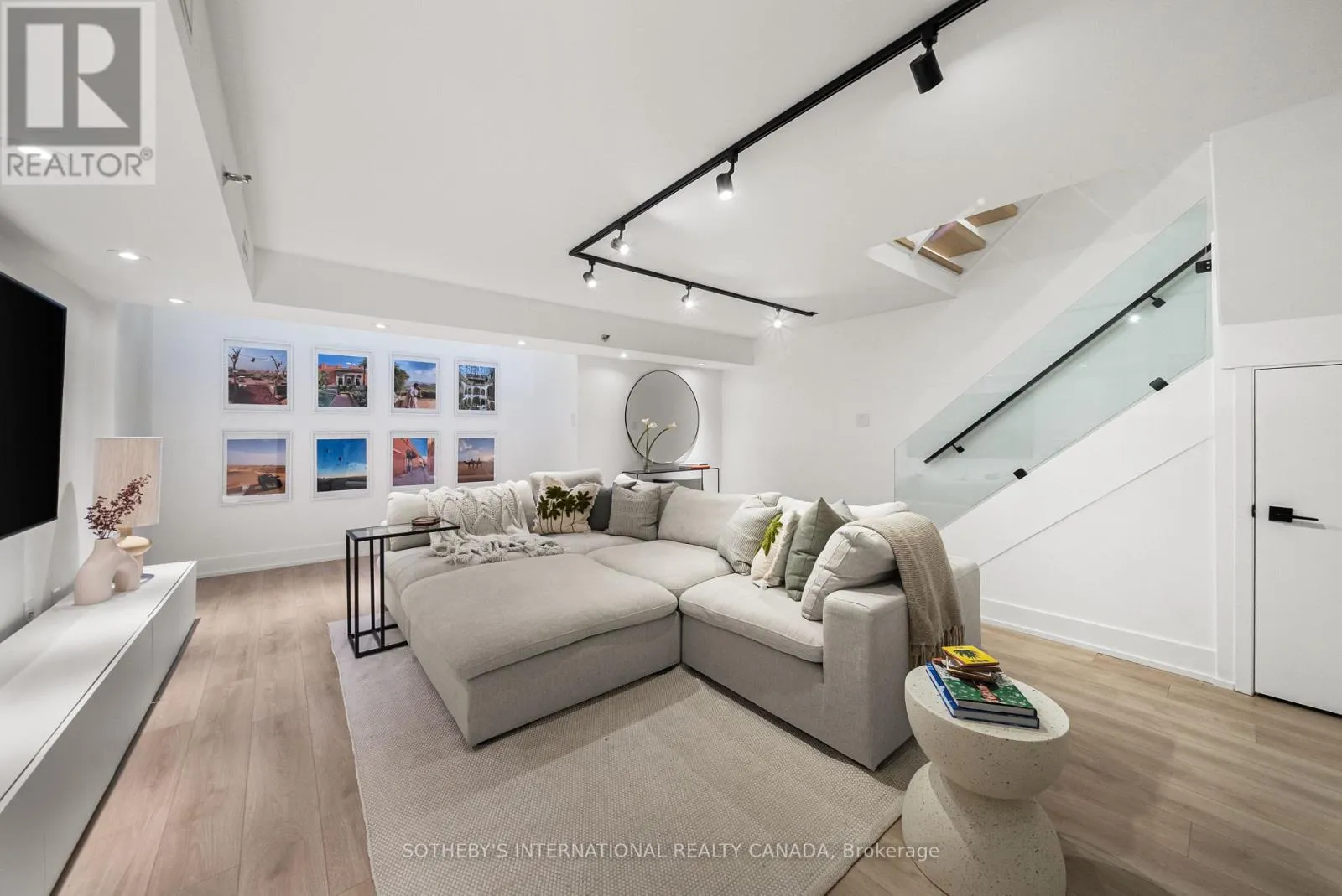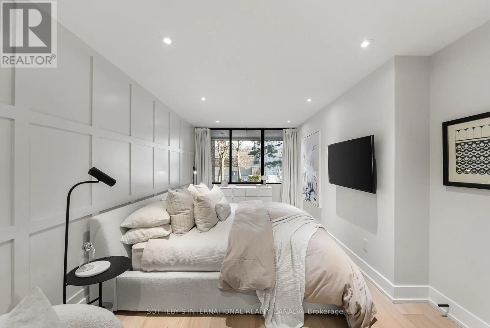 Inside, the home unfolds with intention & flow. The main level has been reimagined into a refined open-concept space where natural light pours through floor-to-ceiling windows, drawing your eye to the terrace & blurring the line between indoors & out. The living area feels expansive yet intimate, while the dining space is anchored by custom built-in shelving with integrated lighting. The kitchen is both striking & functional, featuring sleek cabinetry, clean lines, & a waterfall island. A thoughtful architectural detail sets this home apart: the main floor is open to below, allowing natural light to cascade into the lower level & transforming what is often an overlooked space into one of the home's most versatile & inviting areas. A spacious recreation room & flexible area offer potential for a home gym or additional bedroom, complemented by a 3-piece bath, laundry, & ample storage. The primary bedroom is expansive, overlooking the terrace below, with a large walk-in closet & a beautifully panelled feature wall that adds texture & quiet sophistication through classic picture-frame moulding. The 5-piece bathroom offers a spa-like retreat with refined finishes & dual rain shower heads. A bright second bedroom includes custom wall-to-wall closets. Enhancing the living experience, residents enjoy access to a serene outdoor pool, a recently renovated recreation room, separate women's & men's saunas, & an elegant party room. Complete with underground parking & a locker, this is a rare offering in one of Toronto's most coveted neighbourhoods. (id:27476)
