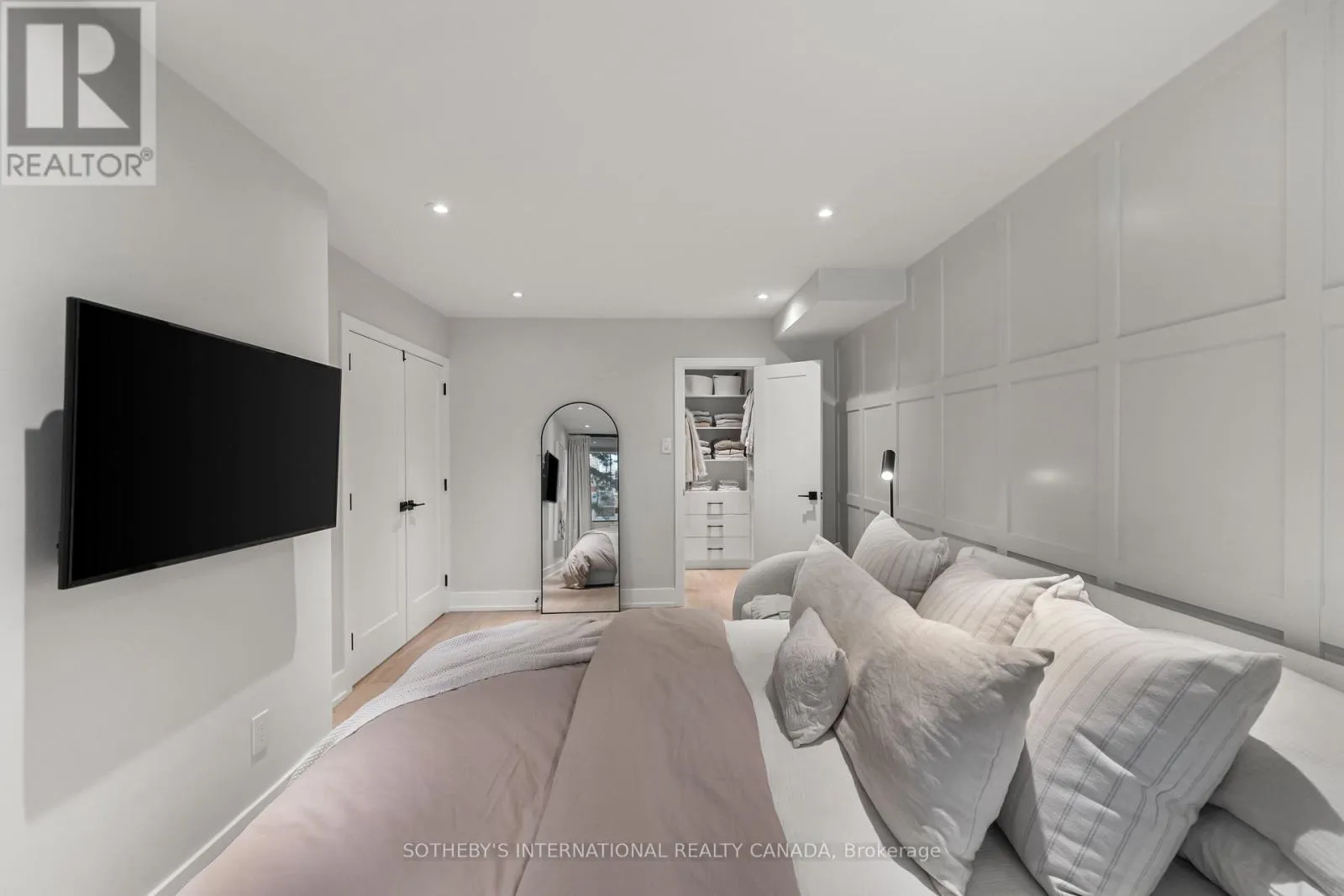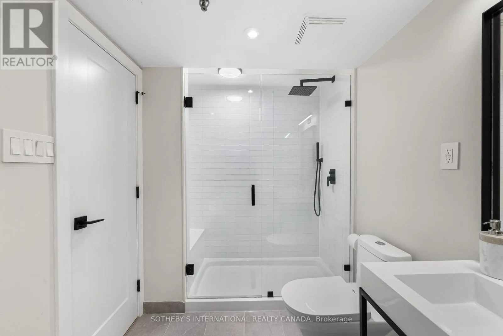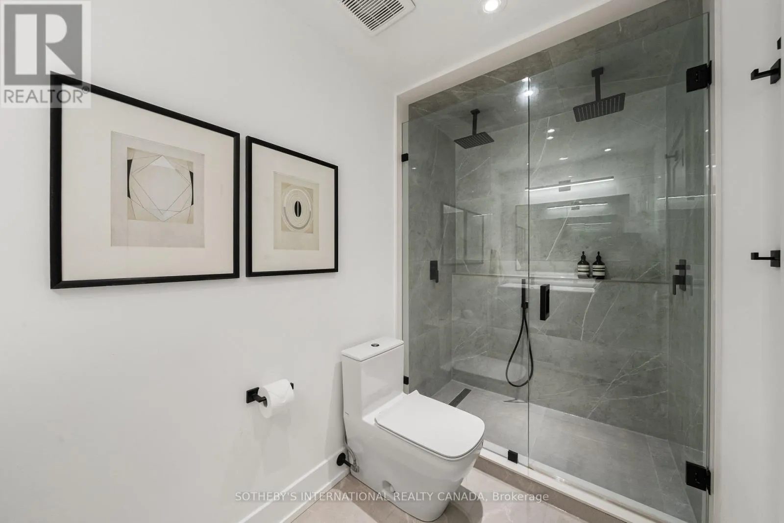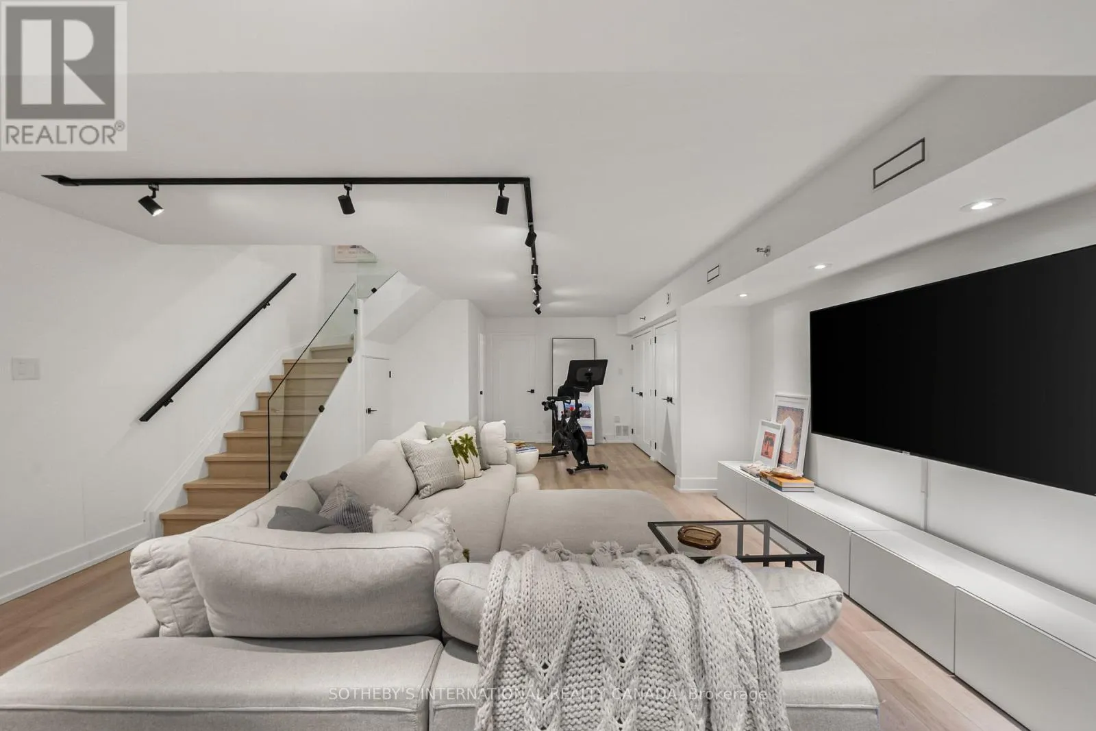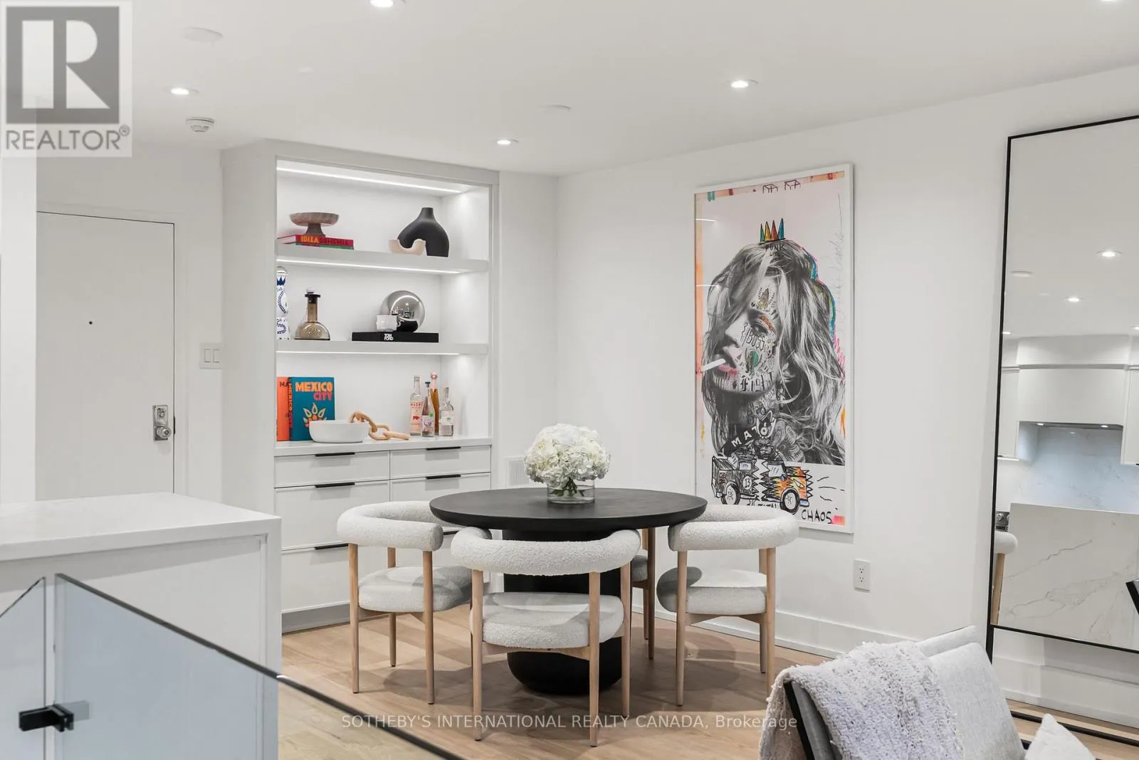 Inside, the home unfolds with intention & flow. The main level has been reimagined into a refined open-concept space where natural light pours through floor-to-ceiling windows, drawing your eye to the terrace & blurring the line between indoors & out. The living area feels expansive yet intimate, while the dining space is anchored by custom built-in shelving with integrated lighting. The kitchen is both striking & functional, featuring sleek cabinetry, clean lines, & a waterfall island. A thoughtful architectural detail sets this home apart: the main floor is open to below, allowing natural light to cascade into the lower level & transforming what is often an overlooked space into one of the home's most versatile & inviting areas. A spacious recreation room & flexible area offer potential for a home gym or additional bedroom, complemented by a 3-piece bath, laundry, & ample storage. The primary bedroom is expansive, overlooking the terrace below, with a large walk-in closet & a beautifully panelled feature wall that adds texture & quiet sophistication through classic picture-frame moulding. The 5-piece bathroom offers a spa-like retreat with refined finishes & dual rain shower heads. A bright second bedroom includes custom wall-to-wall closets. Enhancing the living experience, residents enjoy access to a serene outdoor pool, a recently renovated recreation room, separate women's & men's saunas, & an elegant party room. Complete with underground parking & a locker, this is a rare offering in one of Toronto's most coveted neighbourhoods. (id:27476)