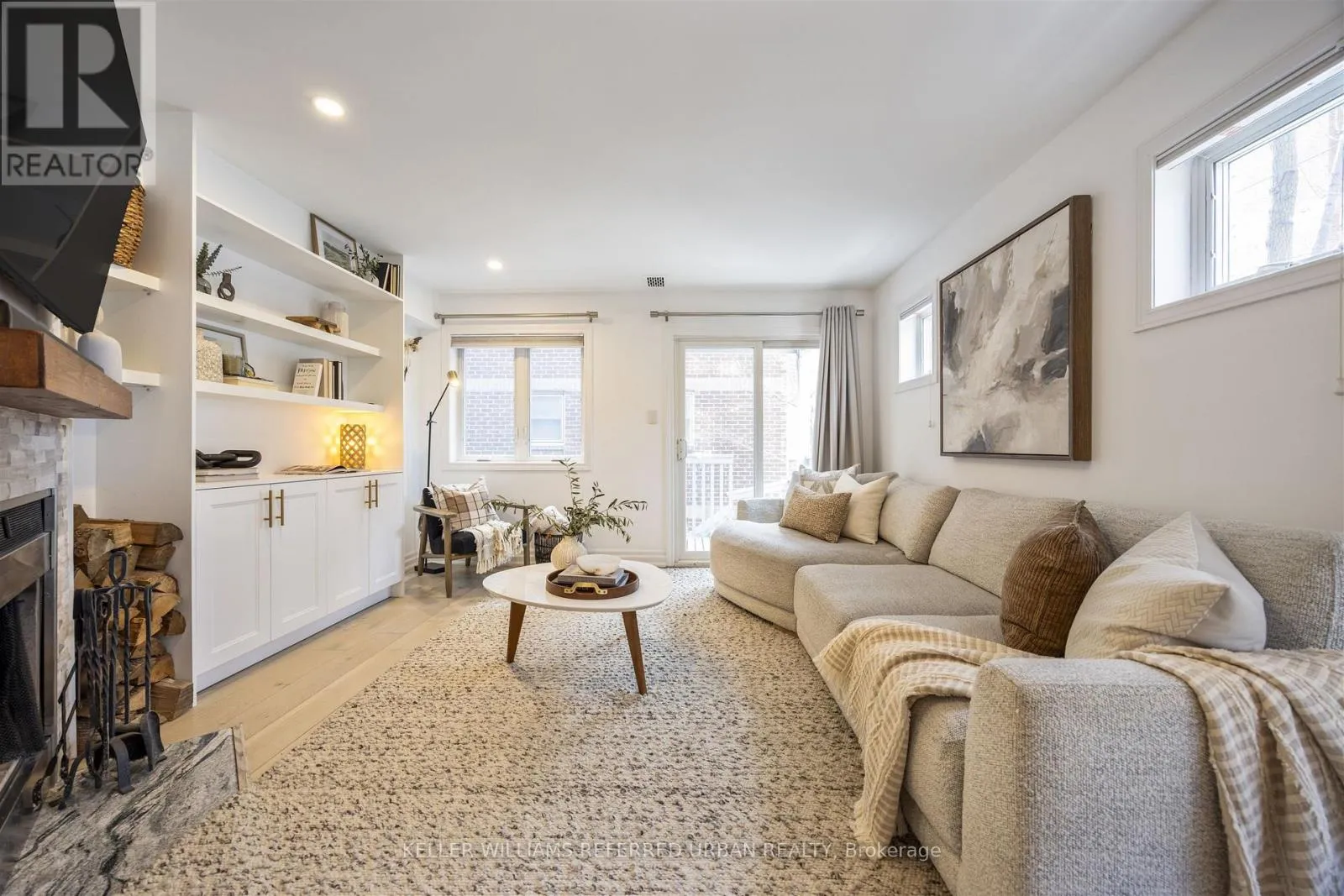 The open-concept living and dining area is anchored by a wood-burning fireplace and walks out to a private deck with access to a quiet community courtyard. A main-floor powder room adds everyday convenience.The second level offers a spacious primary retreat with balcony, custom built-ins, ensuite bathroom, and direct access to laundry. An additional bedroom on this level is ideal for a nursery or home office. The third floor includes two well-sized bedrooms and a full bath. Custom built-in closets and integrated smart-home features enhance comfort and functionality throughout.Located on a quieter street in the heart of vibrant King and Queen West - just steps to Trinity Bellwoods Park, Ossington Avenue, cafés, restaurants, boutique shopping, groceries, outdoor tennis courts, Liberty Village, and transit. Walk Score 97. (id:27476)