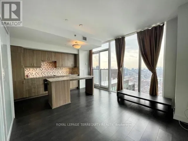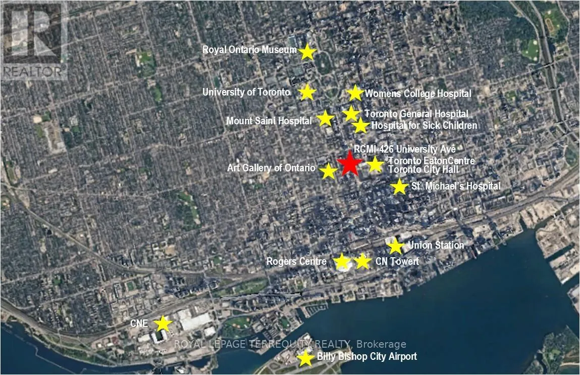 The interior features expansive floor-to-ceiling windows that flood the space with natural light, soaring 9-foot ceilings, and a modern kitchen complete with granite countertops and a functional island. Heat pump replaced in August 2024. Situated in a meticulously maintained non-smoking building, residents enjoy premium amenities including a 24-hour concierge, fitness centre, and bicycle storage. Ideally situated at the intersection of heritage and innovation, the Residences at RCMI boasts a perfect 100 Transit Score and 99 Walk Score, anchored directly between St. Patrick and Osgoode stations for effortless city-wide access. This premium address commands a "blue-chip" position within Toronto's Discovery District, placing residents steps from Hospital Row, the University of Toronto, and the Financial District. Whether you are exploring the trendsetting boutiques of Queen West, the world-class shopping at the CF Toronto Eaton Centre, or the cultural pulse of the Entertainment District, this location offers an unparalleled urban lifestyle where global commerce meets the city's finest dining and entertainment. Note: some photos virtually staged. (id:27476)