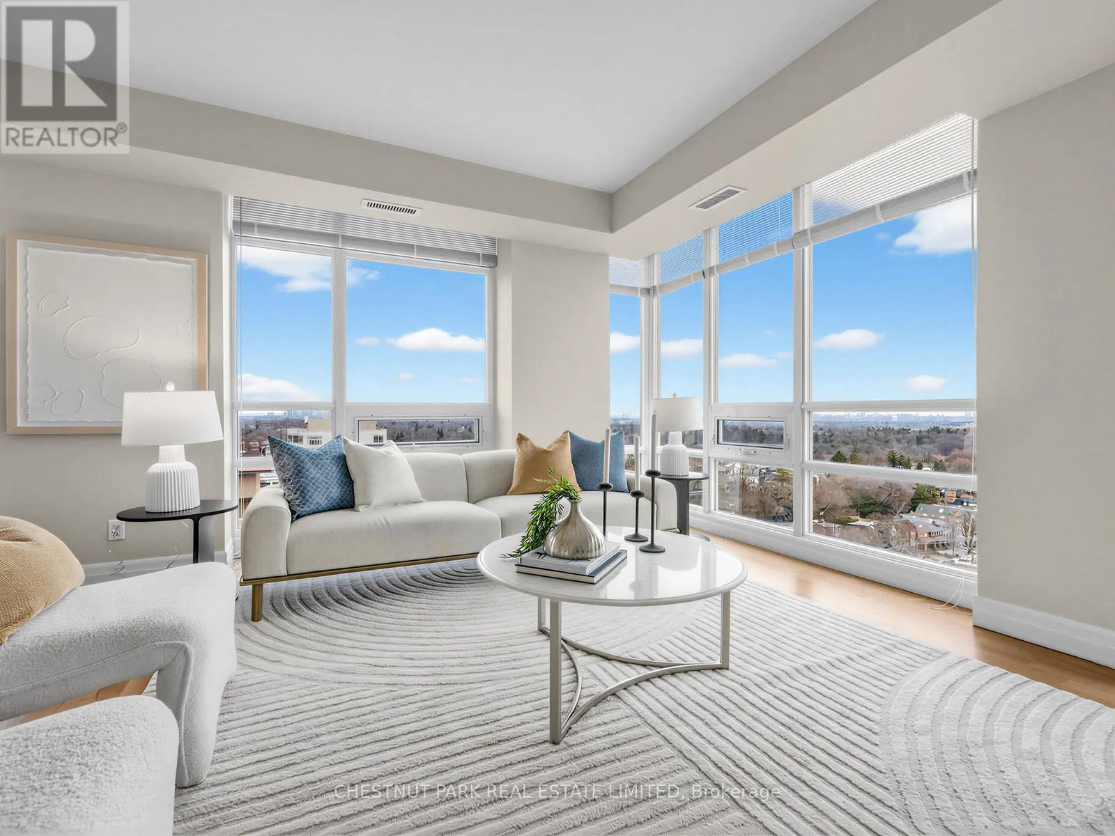 Mount Pleasant & Eglinton East Rarely available exclusive Penthouse in a coveted mid-rise boutique building in the heart of Midtown. Enjoy panoramic views of tree-lined streets, Sherwood Park Ravine, and skyline views of the city and lake from the private terrace. Natural light floods in through expansive windows in every room complimenting the open concept living space. Thoughtful design elements include two walk-outs to a terrace, a split plan for privacy with the primary suite featuring a custom walk-in closet, four piece ensuite, floor-to-ceiling windows, and a walk-out to the terrace.