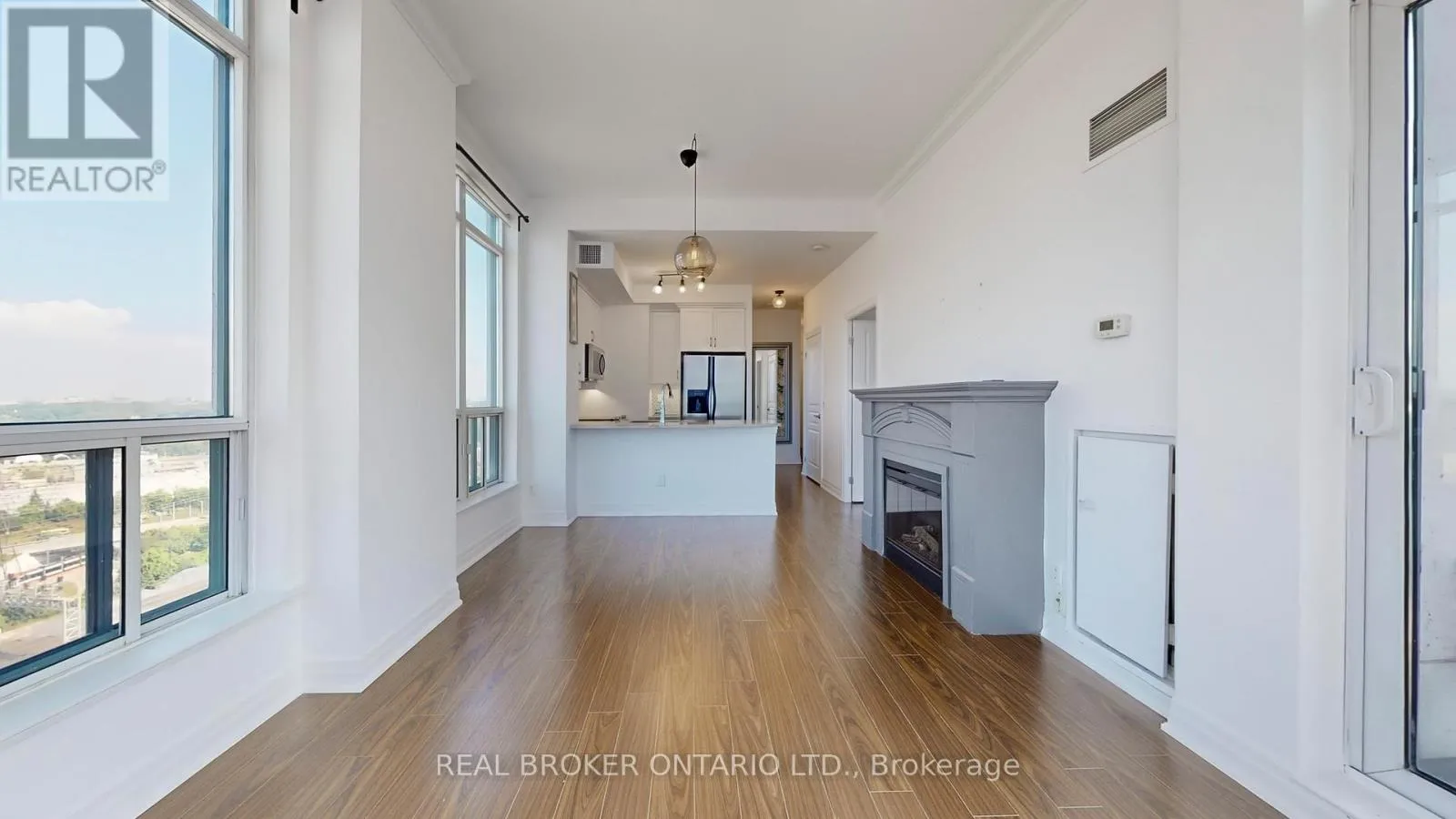 Cross Streets: Lake Shore/Park Lawn. ** Directions: Park Lawn to Lake Shore. Bright and spacious corner penthouse with 2 bedrooms and 2 full baths in the heart of Humber Bay Shores. This sun filled suite features floor to ceiling windows that showcase incredible penthouse views and fill the open concept living and dining areas with natural light. Cozy fireplace adds warmth and character to the living space.