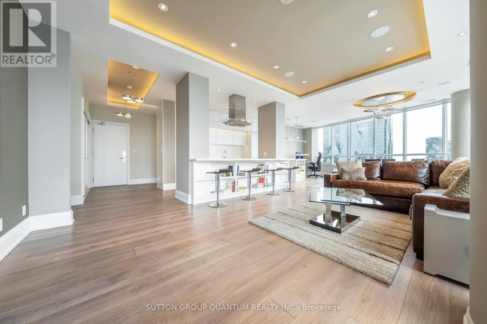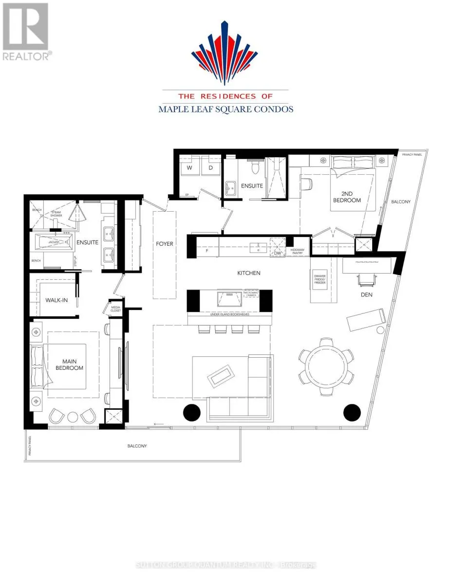 Bremner Blvd. / York Street Welcome To The Residences Of Maple Leaf Square Located In The Heart Of Toronto's Harbourfront, Financial & Entertainment Districts. This Prestigious Sub-Penthouse 2 Bedroom + Den Corner Suite Features Approximately 1424 Interior Square Feet. Meticulously Re-Designed Throughout With Top Of The Line Appliances, Automated Built-In Kitchen Cabinetry, Stone Countertops, An Undermount Sink & A Breakfast Bar.