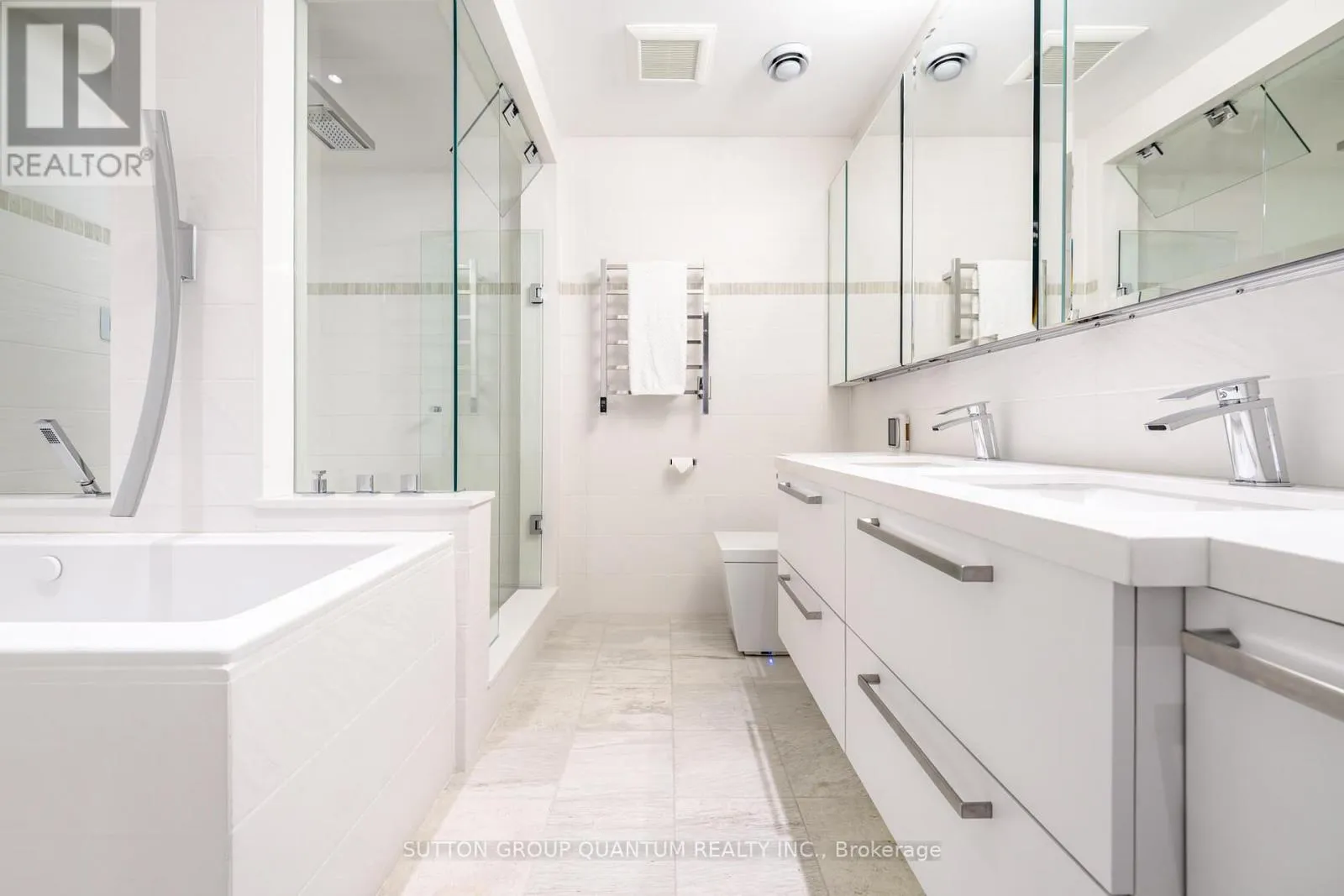 Bright Soaring 10-Foot Floor To Ceiling Wrap Around Windows With Dropped Ceilings, Pot Lighting & Integrated Ambient Led Lighting. Control4 Smart Home Automation With Dual-Layer Blinds, Audio, Lighting & Climate Control Systems. Luxurious Lighting Fixtures, Natural Stone Window Sills & Hardwood Flooring Throughout Facing Stunning South East Sweeping City & Lake Views. The Soundproofed Grand Bedroom Retreat Includes A 5-Piece Ensuite With Kohler Numi Intelligent Toilet, Heated Floor, Heated Towel Racks, Mirror Integrated Defogging, Undermount Double Sinks, A Separate Glass Enclosed Spa Steam Shower With Heated Bench & A Relaxing Deep Neptune Therapy Whirlpool Tub. A Spacious Sized Split 2nd Bedroom With A 3-Piece Ensuite With Spa Shower, Heated Floor, Heated Towel Rack, Large Closet & A Walk-Out To The Balcony. An Open Concept Den Area Perfect For A Home Office. Connected Directly To M.L.S. Mall, Longo's, Starbucks, Pharmacy, Restaurants, Underground P.AT.H., Scotiabank Arena & Union Station. Steps To Toronto's Harbourfront, C.N. Tower, Rogers Centre, Ripley's Aquarium, The Financial & Entertainment Districts. 1-Premium Parking Space & 1-Premium Locker Is Included Both Located On The P2 Level. Click On The Video Tour! (id:27476)
