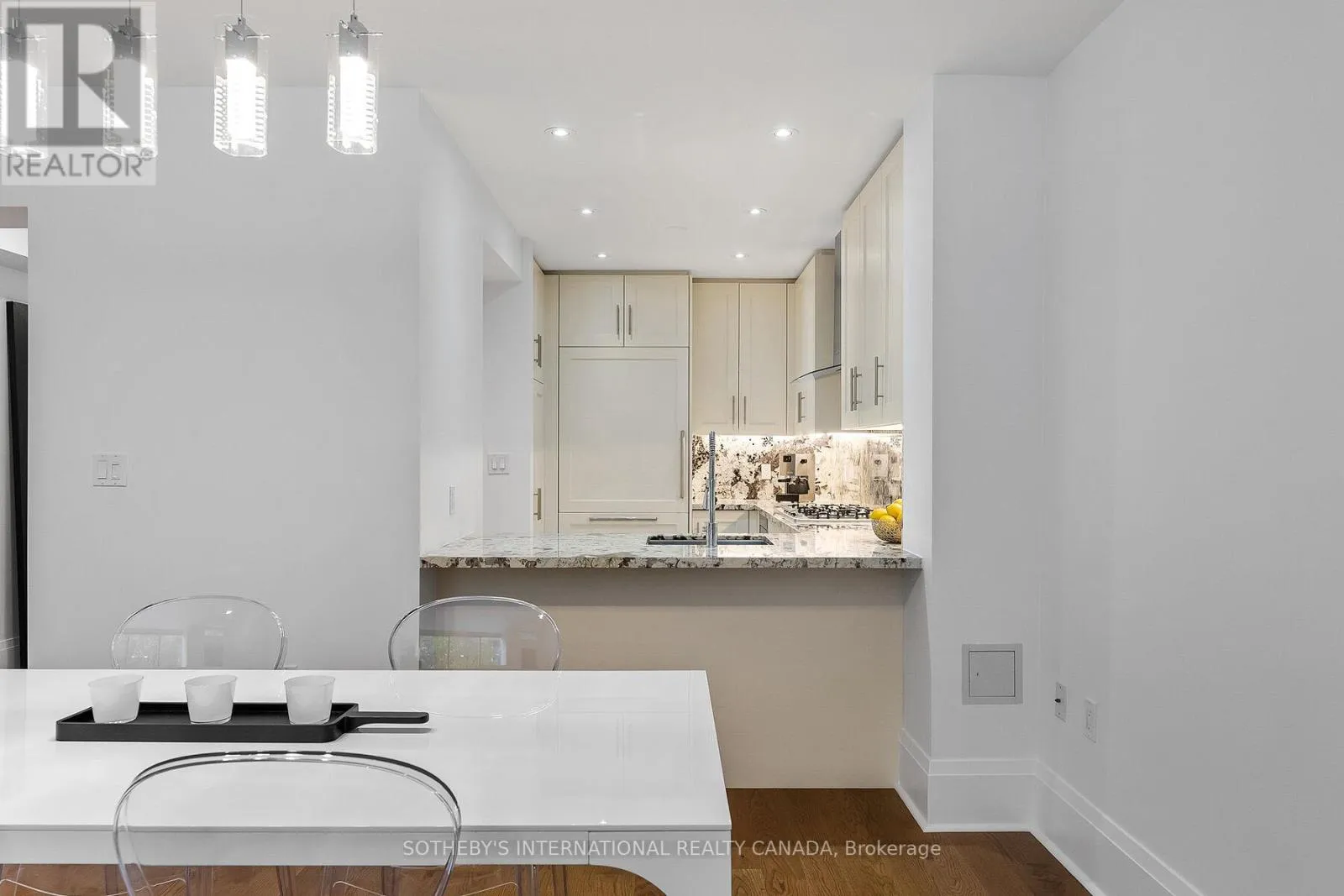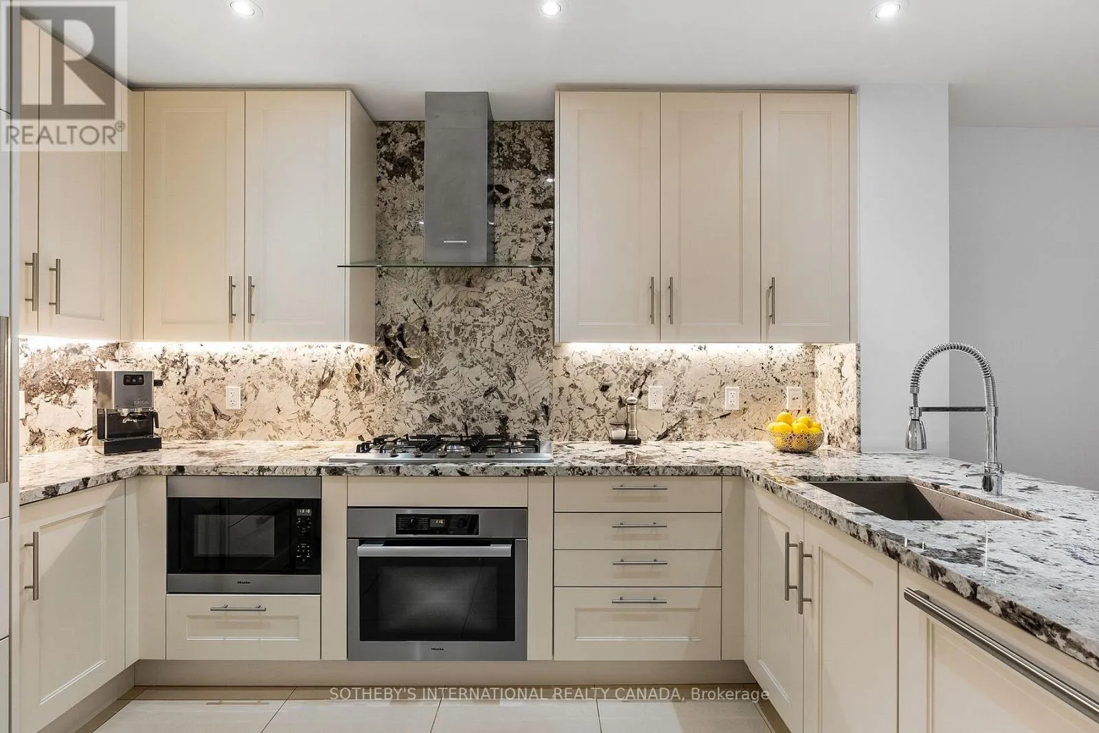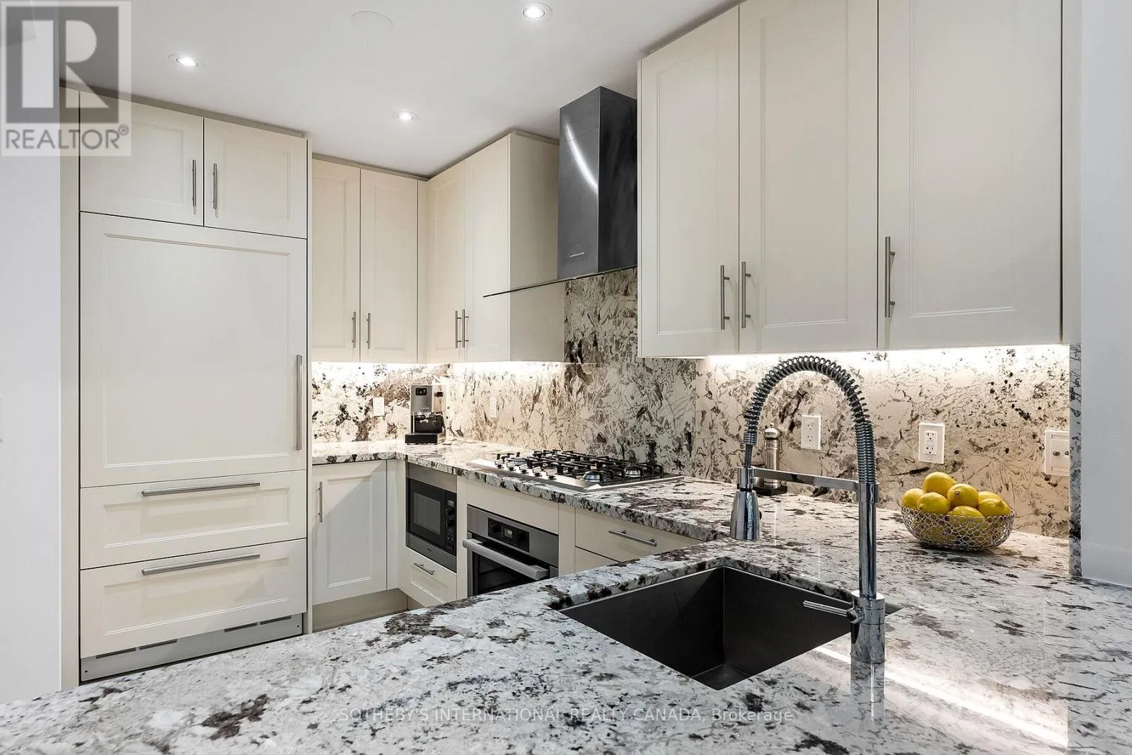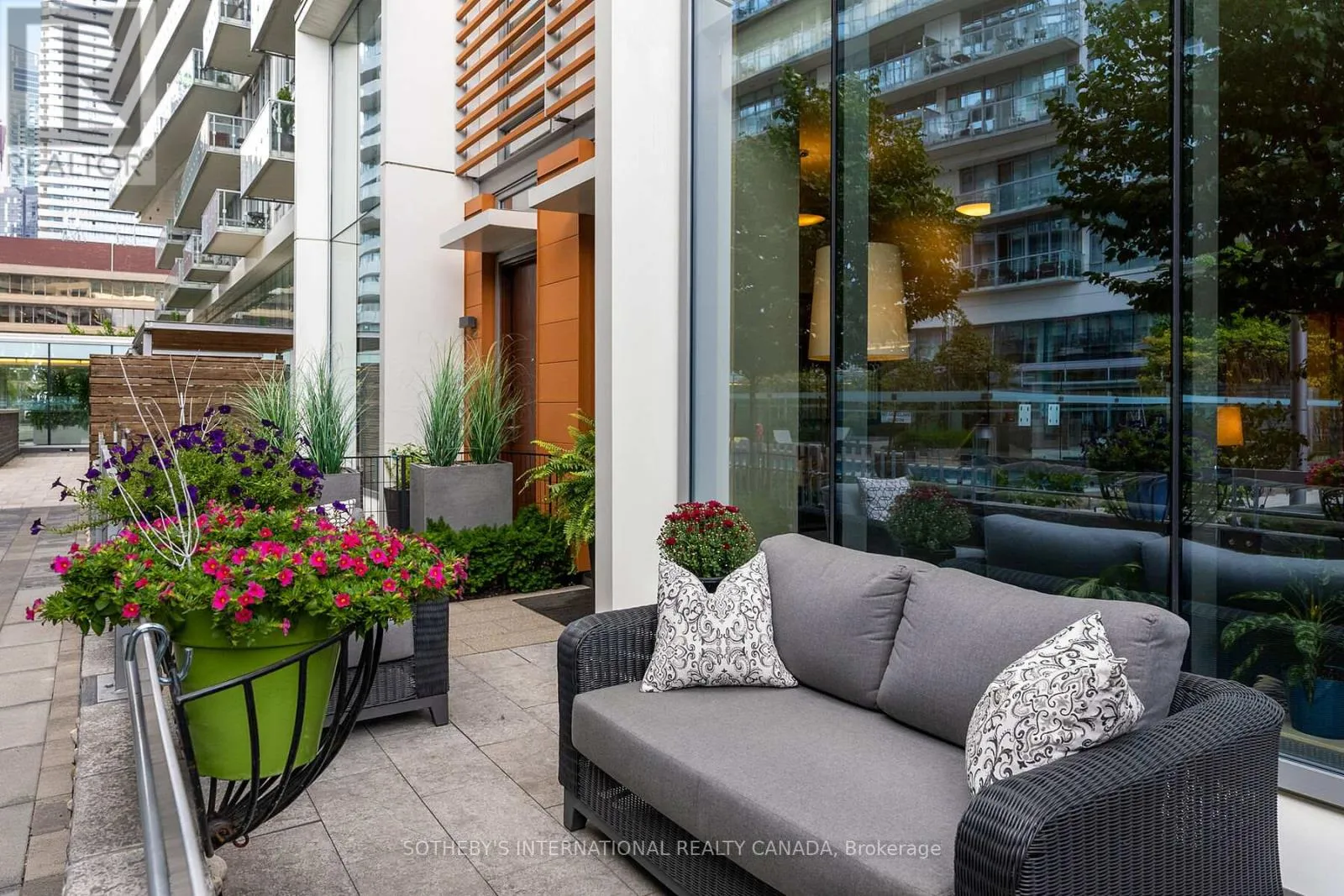One of only eight in a gated courtyard, this 2-bedroom + office area, 2.5 bath residence offers refined comfort and smart convenience. 10-footceilings, wide plank solid oak floors through-out, and a custom fireplace set the tone for elegant living. Open floor plan, features gourmet kitchen, with granite countertops and matching backsplash, Miele and Subzero appliances, gas cooktop, breakfast bar, and custom cabinetry. Electronic blinds allow for effortless light control and privacy. Step outside to your private patio overlooking the landscaped courtyard complete with a gas hookup for easy outdoor dining. A private in-suite elevator connects all three levels, 2 parking spots (side by side) are located outside your door. A separate storage locker adds even more convenience. Enjoy access to premium, resort style amenities: indoor and outdoor pool, fitness room, dry and steam rooms, guest suites, party room, theatre room library, and 24 hour concierge. A rare offering of luxury, lifestyle, and unbeatable location all in one sophisticated retreat. And 24 hour concierge, visitor parking., Walking distance to Union Station. ACC. And close to the QEW and the Don Valley (id:27476)