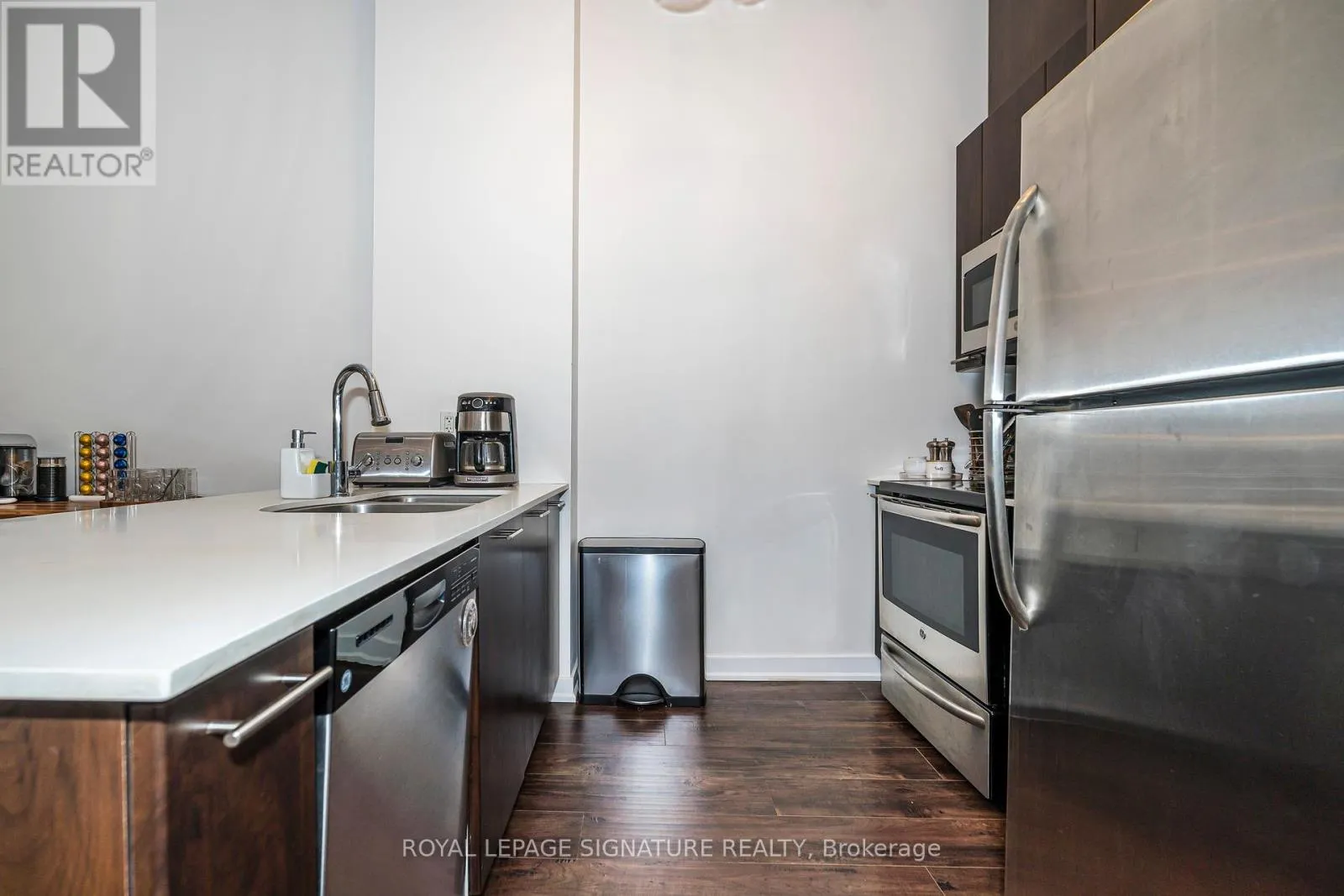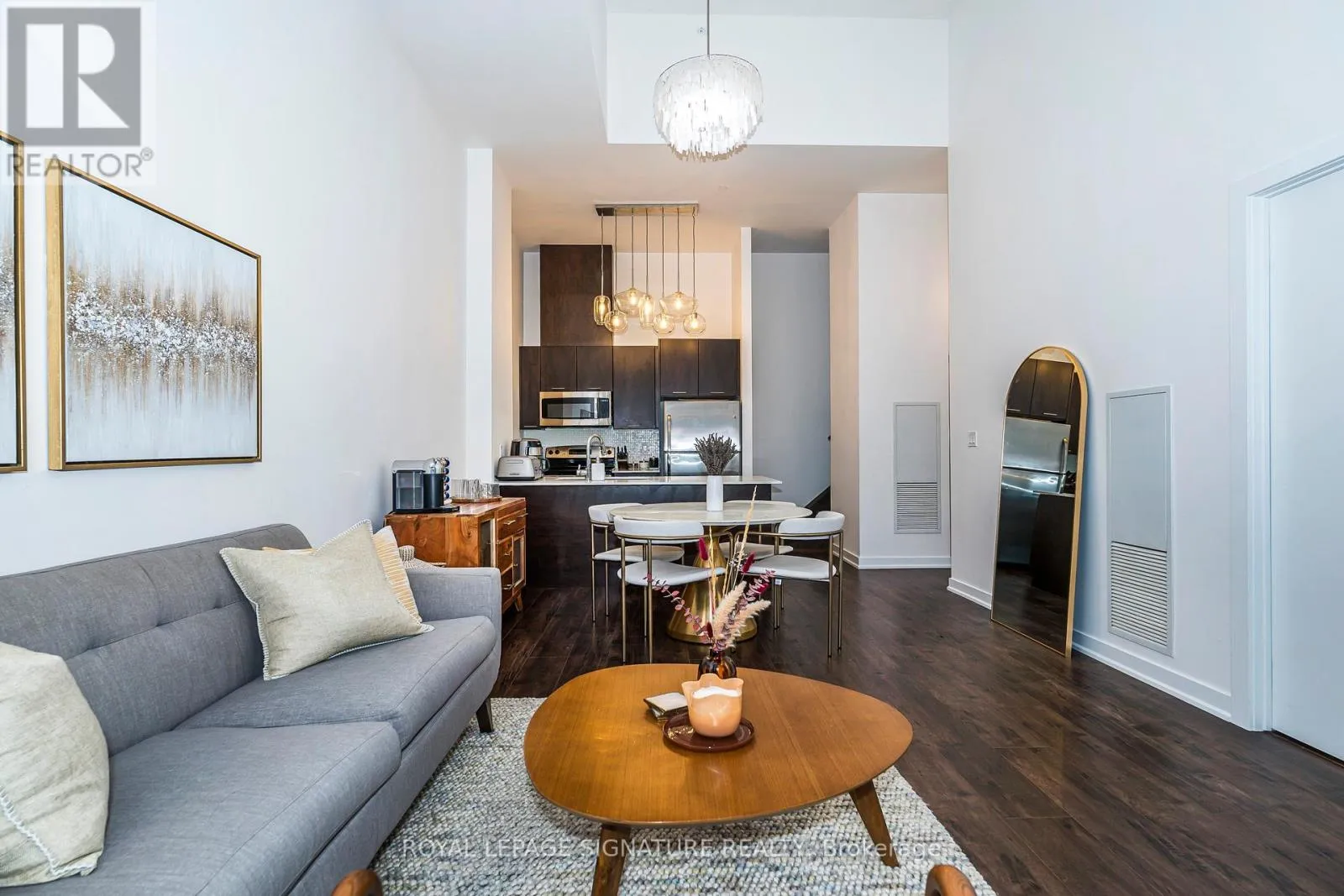 The open-concept main level boasts high-quality laminate flooring throughout, dramatic 15-ft ceilings, and floor-to-ceiling windows that flood the home with natural light. A private patio extends the living space outdoors, creating a welcoming retreat for relaxation or entertaining. The chef inspired kitchen is beautifully appointed with a double undermount sink, quartz countertops, breakfast bar, and sleek cabinetry, making it perfect for both everyday living and hosting guests. The primary bedroom features a 4 piece ensuite, walk-in closet, and a private balcony, creating the perfect blend of comfort and privacy. A versatile den area offers an ideal space for a home office or reading nook. Every detail reflects pride of ownership, from the pristine finishes and beautiful upgraded light fixtures to the automated Hunter Douglas blinds on the main floor and custom blinds on the second level. Residents of this boutique community enjoy a wide range of amenities, including 24-hour concierge service, a fully equipped fitness centre, rooftop terrace, spacious party room, guest suites, media lounge, and visitor parking. The location is unbeatable with easy access to King West, Billy Bishop Airport, and TTC transit at your door, plus nearby parks, waterfront trails, restaurants, and entertainment. Everyday essentials are just steps away, with a Farm Boy up the street and LCBO, Loblaws, and Shoppers Drug Mart conveniently located across the road. The Rogers Centre, CN Tower, and countless downtown attractions are also just minutes from your door. (id:27476)