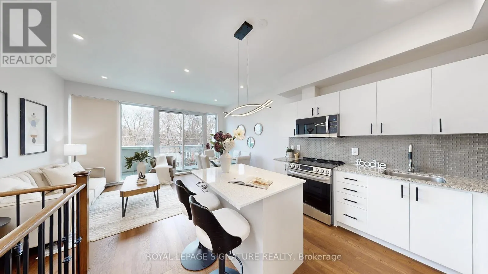 Carlaw/Queen Welcome to this stunning, fully upgraded modern 3-bedroom, 2-washroom townhouse in the award-winning Printing Factory Lofts & Towns, ideally located at Carlaw and Queen in the heart of South Riverdale.This beautifully appointed home features 9-foot ceilings, newly upgraded engineered hardwood flooring throughout, an upgraded kitchen with stone countertops, a new island with added storage and breakfast seating, stainless steel appliances includes double door fridge, a brand new kitchen faucet, upgraded lighting, hardwood stairs, and modern railings.