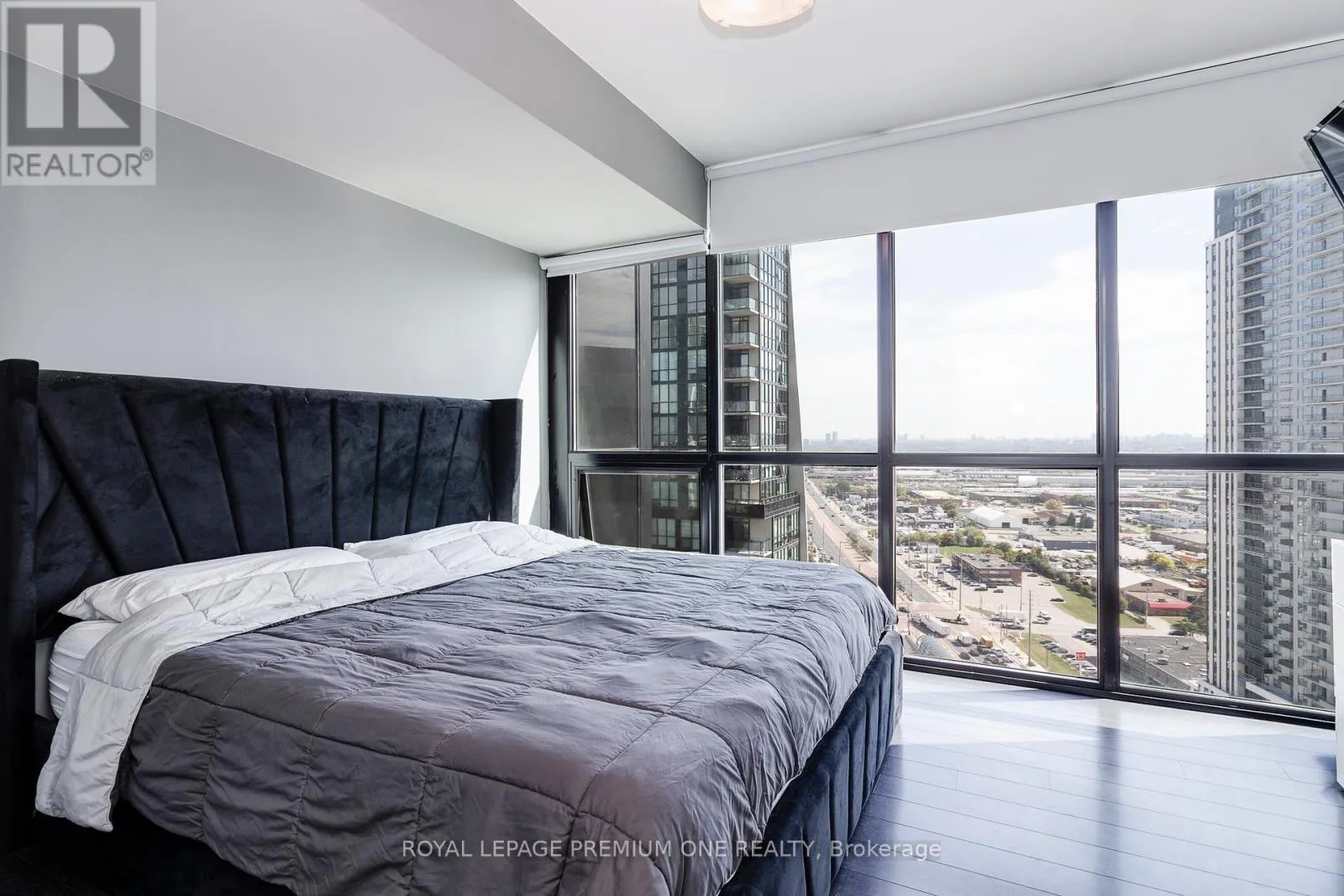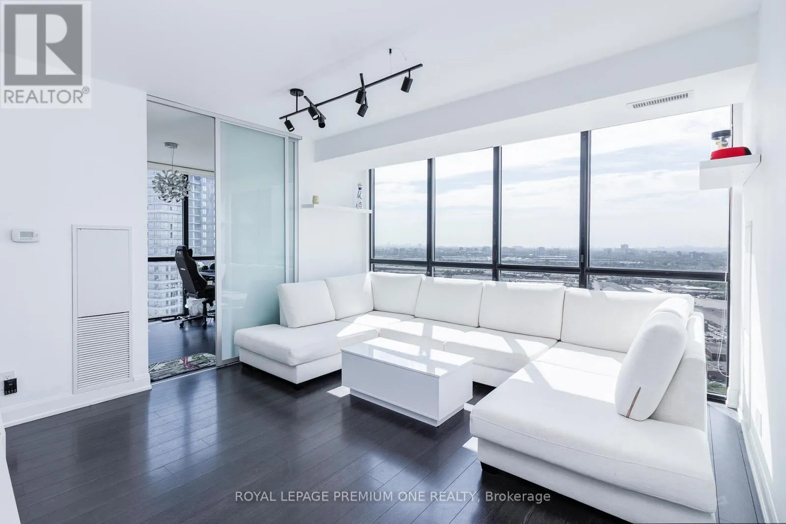 Jane St and Highway 7 Welcome to Expo 2 Condos Where Style Meets Convenience This stunning corner unit offers 936 sq. ft. of beautifully designed living space, featuring 2 spacious bedrooms, a versatile den, and 2 full bathrooms. The open-concept layout is enhanced by soaring 9-foot ceilings, upgraded engineered hardwood floors, and expansive floor-to-ceiling windows that fill the suite with natural light.