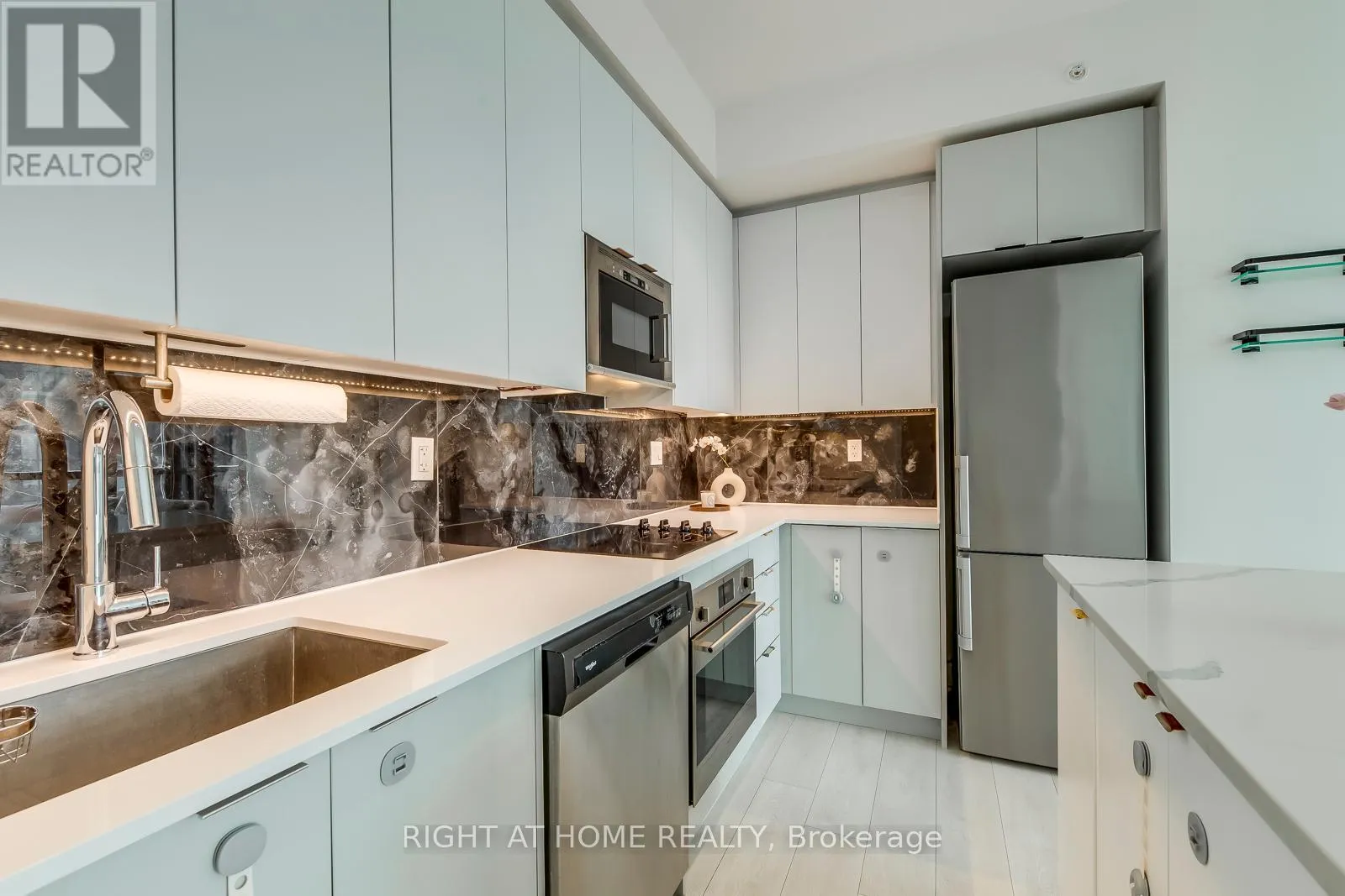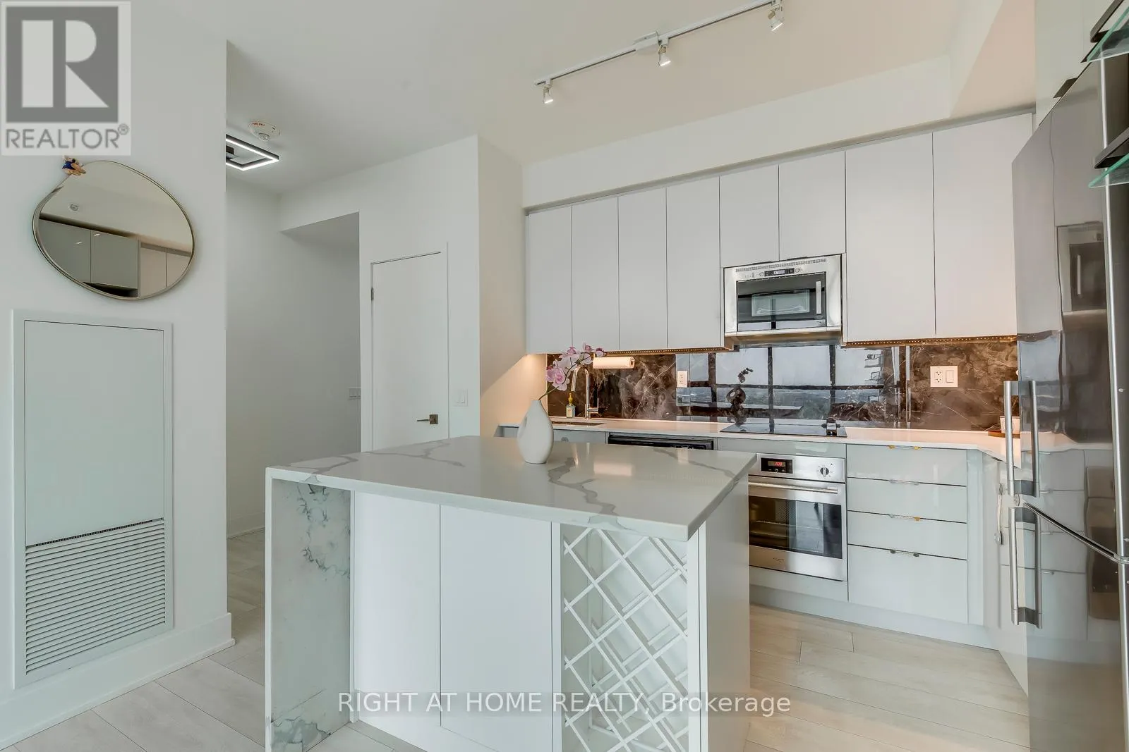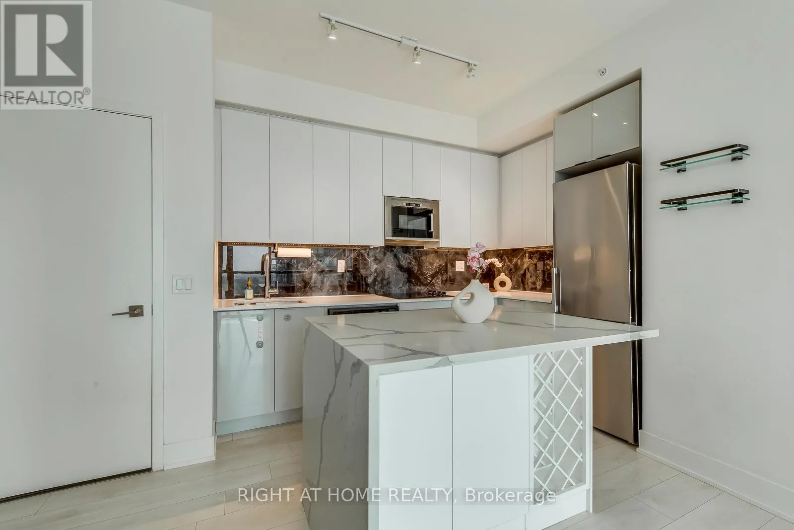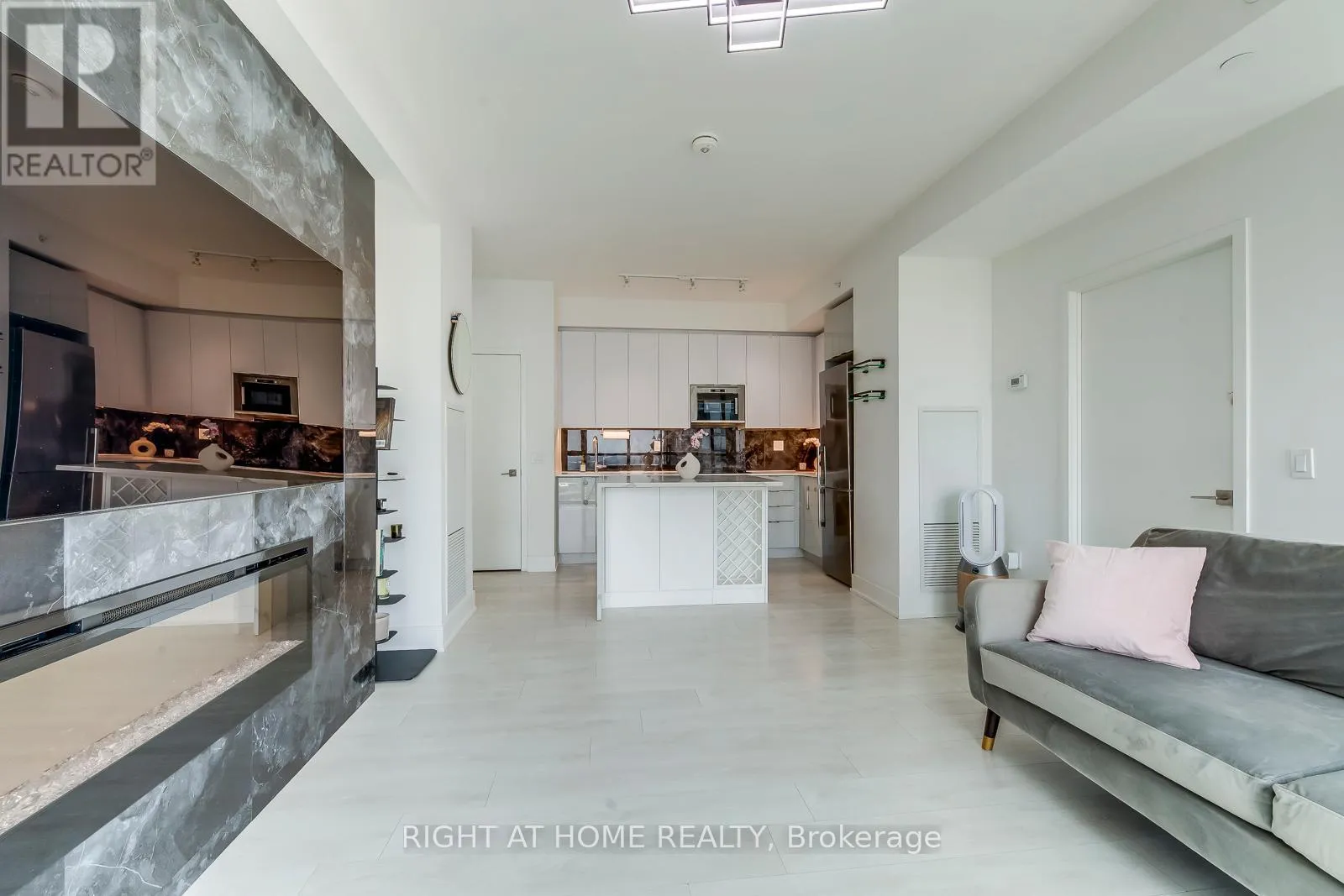 Cross Streets: Jane St & Highway 7. ** Directions: SE. Welcome to this 2 Bed+2 full-Bath Corner Unit on the High Floor! This Popular Essex Model Comes Full Of Upgrades And Custom Features- Premium 24X48 Porcelain Backs-plash, Custom Kitchen Island With B/I Wine Rack And Waterfall Cabrera Marble Countertop., Custom B/I Fireplace Feature Wall Whats Audio Video Station Ready And Same Luxurious Tile As The Backs-plash, Led Under Cabinet Lighting And Elfs.