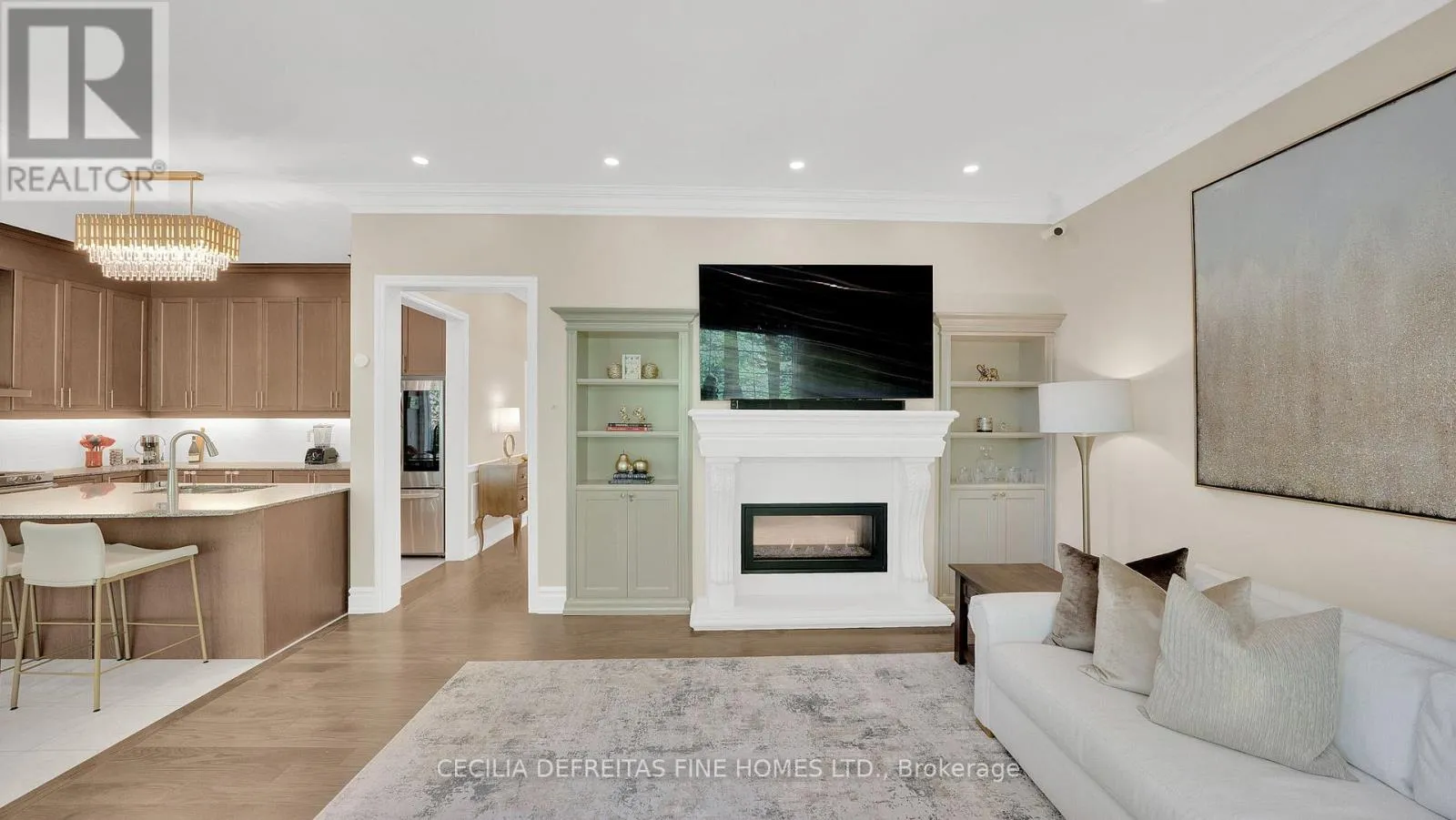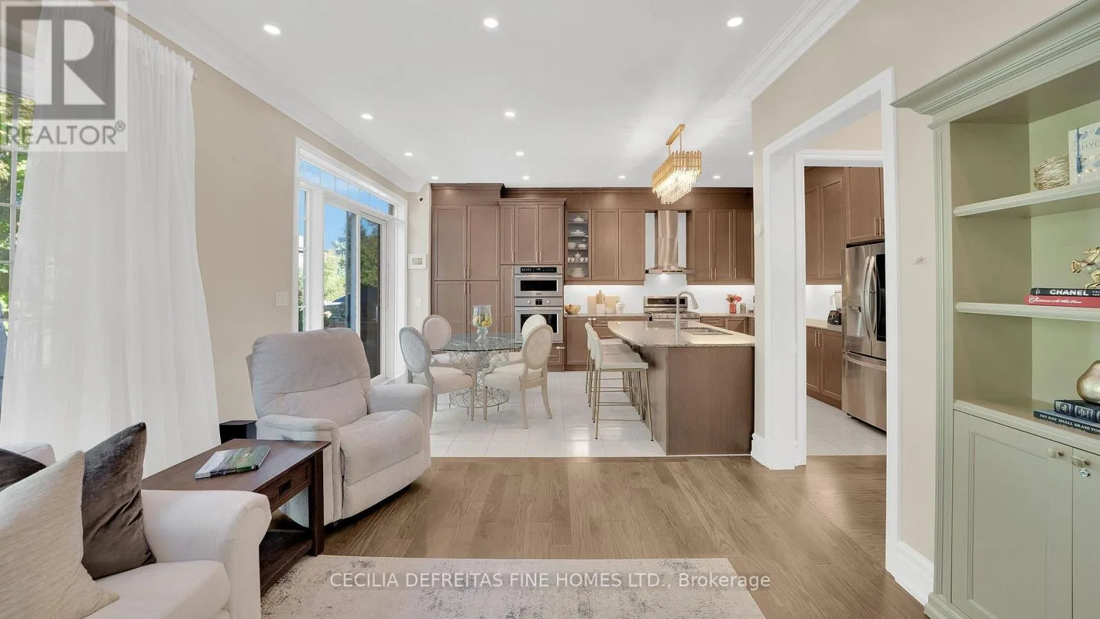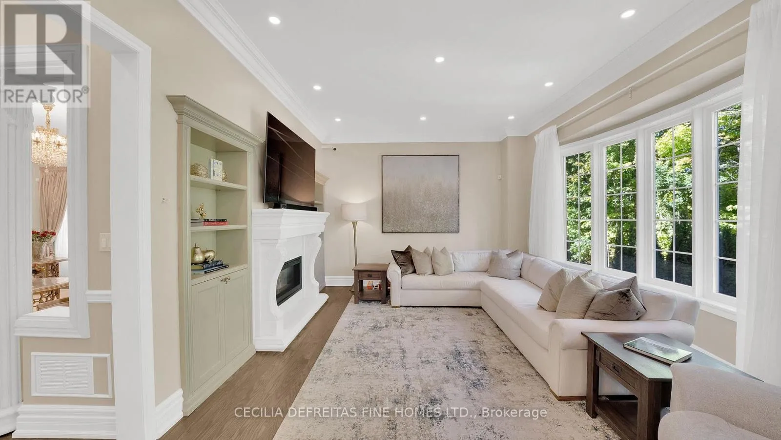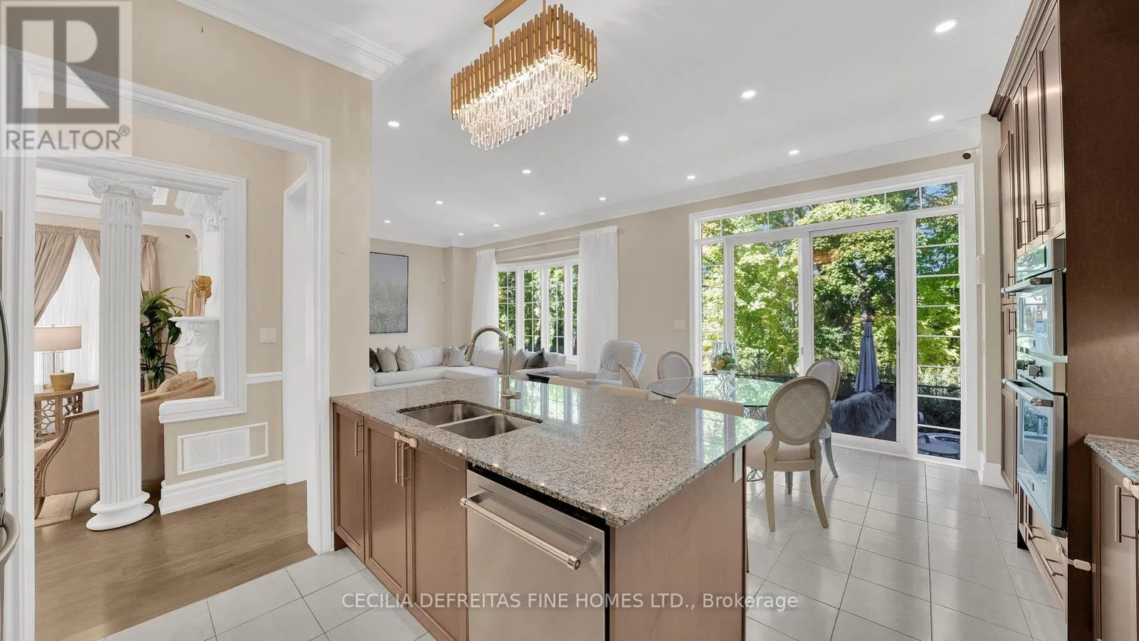 An open concept living and family room is united by a custom double sided stone fireplace, creating a warm and inviting focal point that enhances the homes's transitional style. Family room with built in cabinetry overlooks the lush ravine. Chef inspired kitchen boasts built in appliances including a wall oven, floor to ceiling pantry and a highly functional layout ideal for everyday living and entertaining. You'll love the second-floor laundry room simplifying daily routines, while the custom-designed primary walk-in closet is every woman's dream. With 5 generous bedrooms, this home easily accommodates a growing family. Located close to top-rated schools, parks, shopping, Canada's Wonderland, Vaughan Mills shopping, Cortellucci Vaughan Hospital, offering the perfect balance of luxury, privacy and family living. (id:27476)