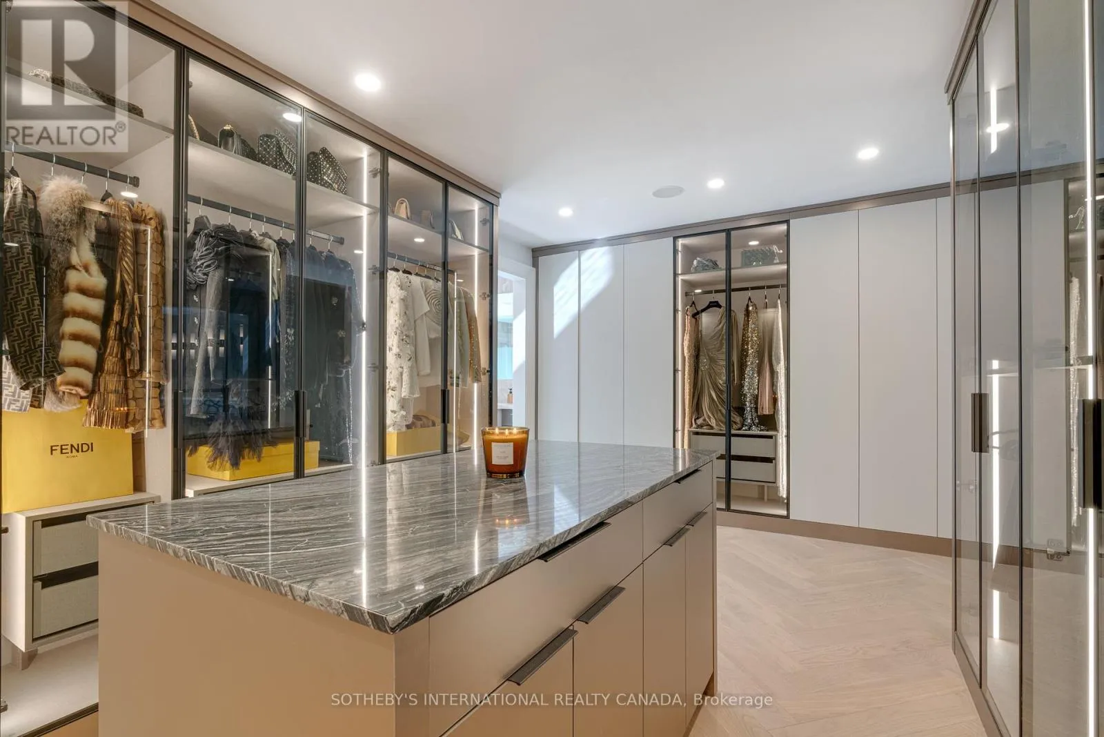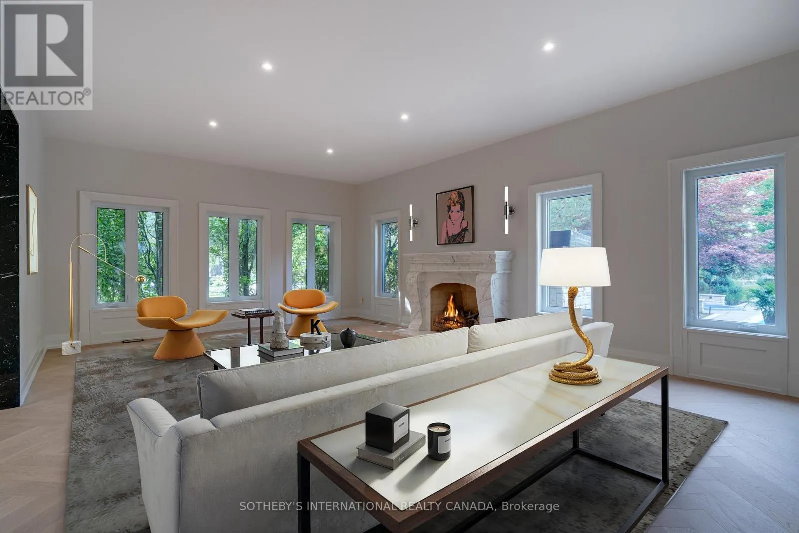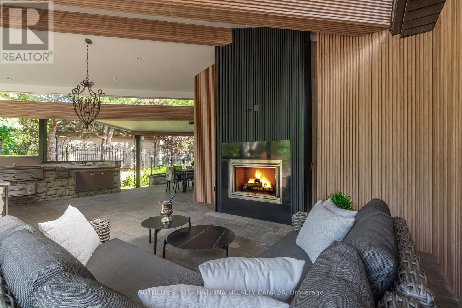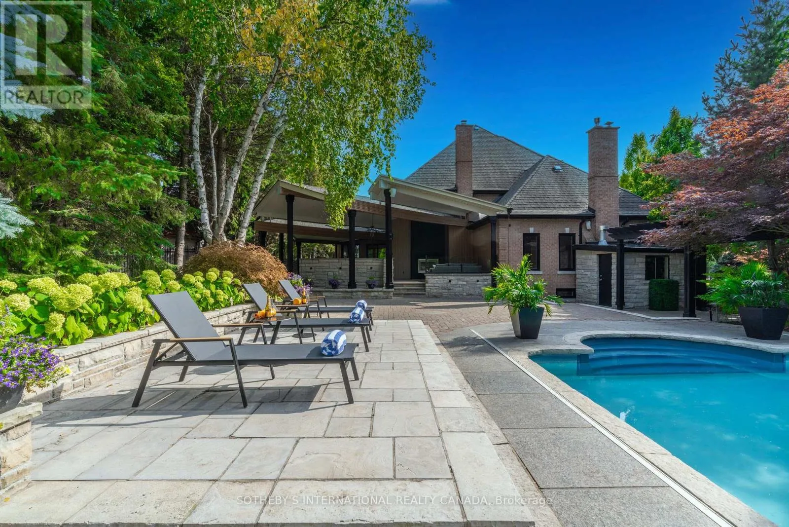 Inside, refined craftsmanship is showcased through slab stone finishes, marble fireplaces, and a grand reception entrance with a 3-storey floating staircase. The residence offers: A primary suite with a Fendi Casa inspired walk-in closet and spa-like bath, ensuite baths and built-in closets in every upper-level bedroom; 3+1 kitchens and 2 laundry rooms for ultimate convenience; a wellness area with heated floors, change room, powder room and contemporary spa-shower plus direct pool access. Media and games rooms, sauna, home gym (or nanny's suite), and a dedicated space for a customized panic room. The resort-style backyard is designed for entertaining with an inground pool, covered loggia with outdoor kitchen and fireplace, dining and seating areas, and open, park-like grounds perfect for growing an organic vegetable garden or children's play. Parking for 15 vehicles includes a 3-car garage with lift-ready capacity. Move-in ready before Christmas, this estate combines contemporary luxury, privacy, and security - perfect for the discerning buyer. *Some pictures are virtually furnished. (id:27476)