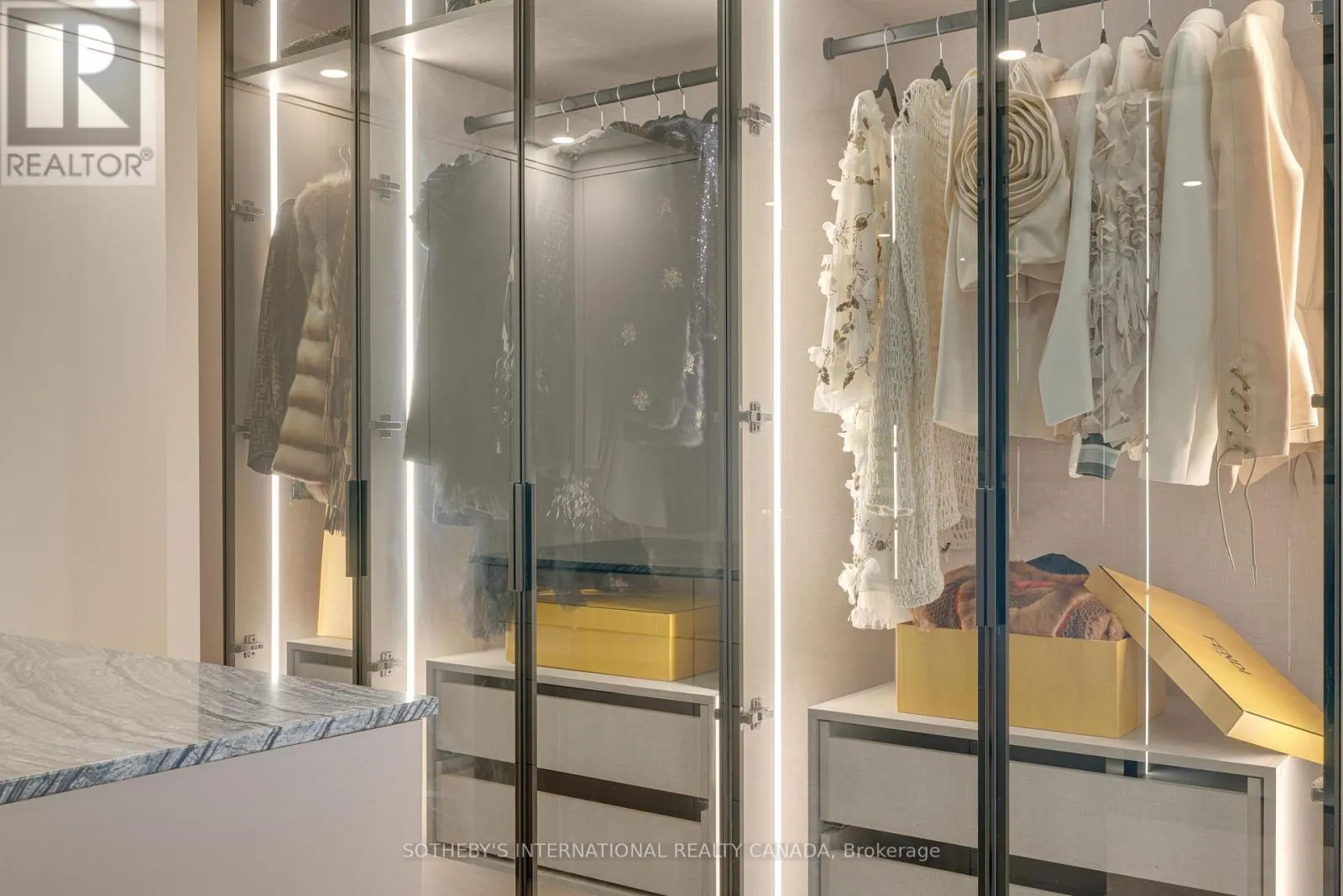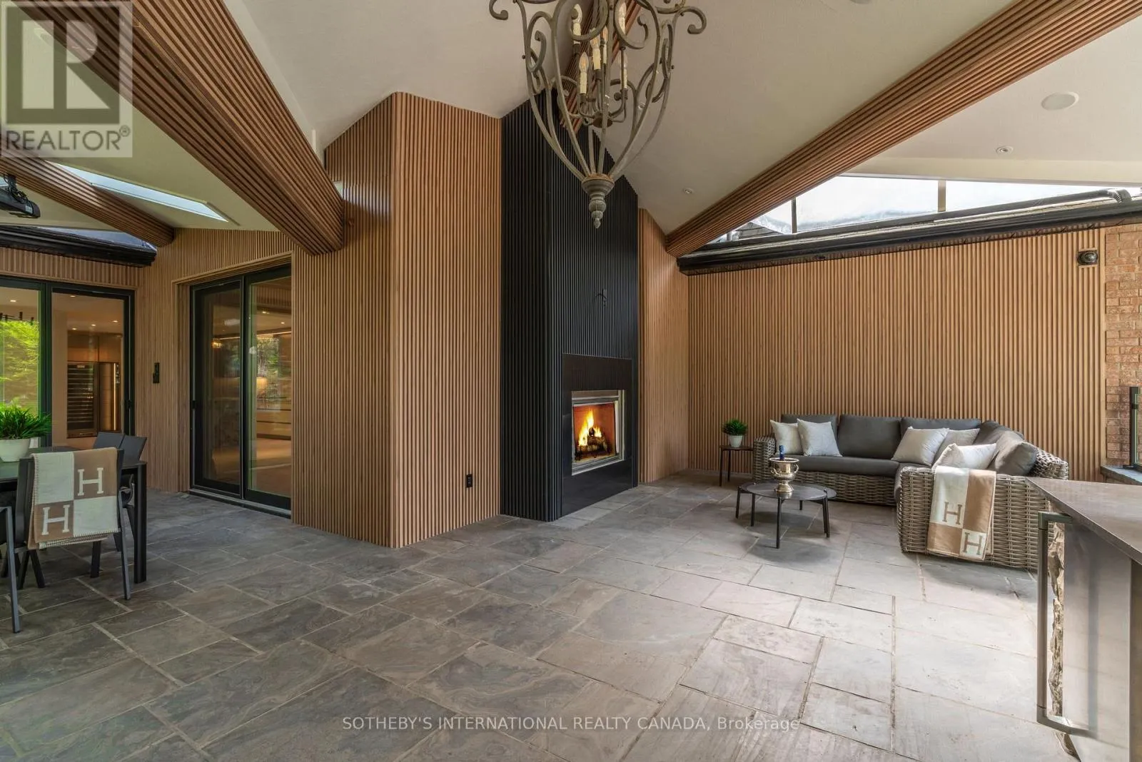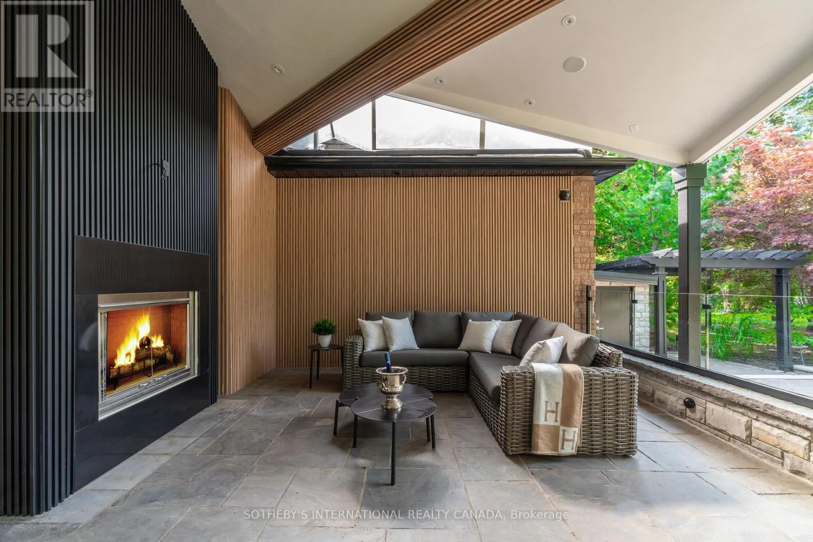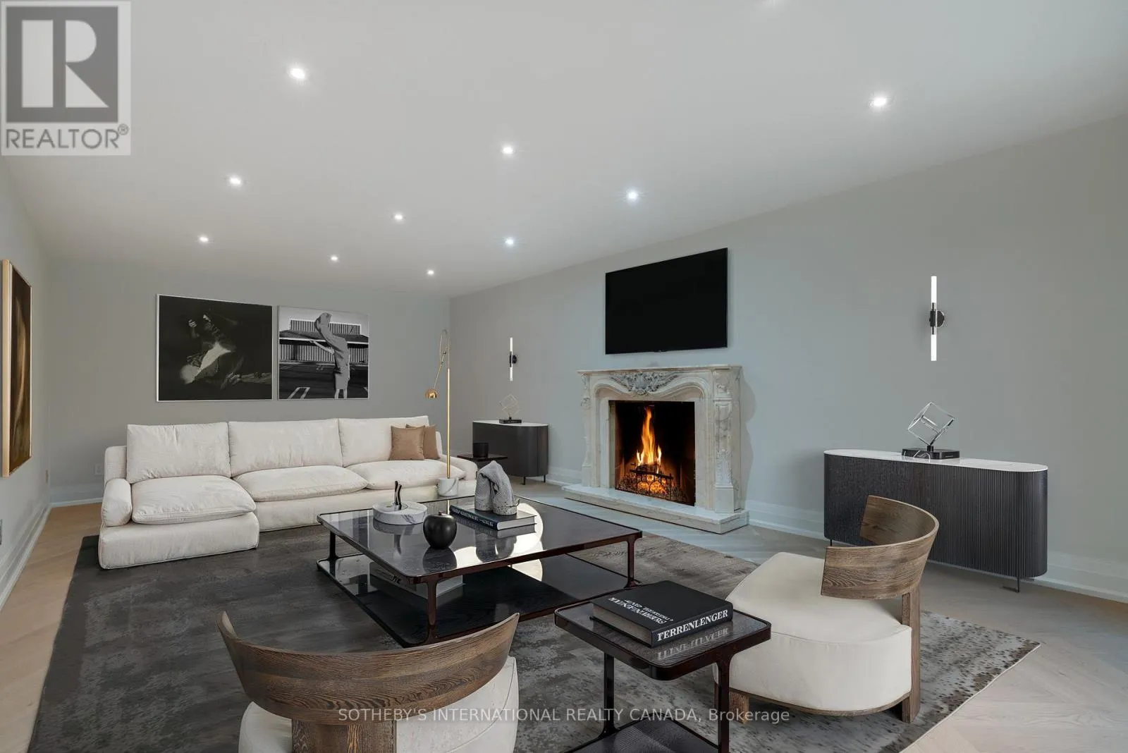 Inside, refined craftsmanship is showcased through slab stone finishes, marble fireplaces, and a grand reception entrance with a 3-storey floating staircase. The residence offers: A primary suite with a Fendi Casa inspired walk-in closet and spa-like bath, ensuite baths and built-in closets in every upper-level bedroom; 3+1 kitchens and 2 laundry rooms for ultimate convenience; a wellness area with heated floors, change room, powder room and contemporary spa-shower plus direct pool access. Media and games rooms, sauna, home gym (or nanny's suite), and a dedicated space for a customized panic room. The resort-style backyard is designed for entertaining with an inground pool, covered loggia with outdoor kitchen and fireplace, dining and seating areas, and open, park-like grounds perfect for growing an organic vegetable garden or children's play. Parking for 15 vehicles includes a 3-car garage with lift-ready capacity. Move-in ready before Christmas, this estate combines contemporary luxury, privacy, and security - perfect for the discerning buyer. *Some pictures are virtually furnished. (id:27476)