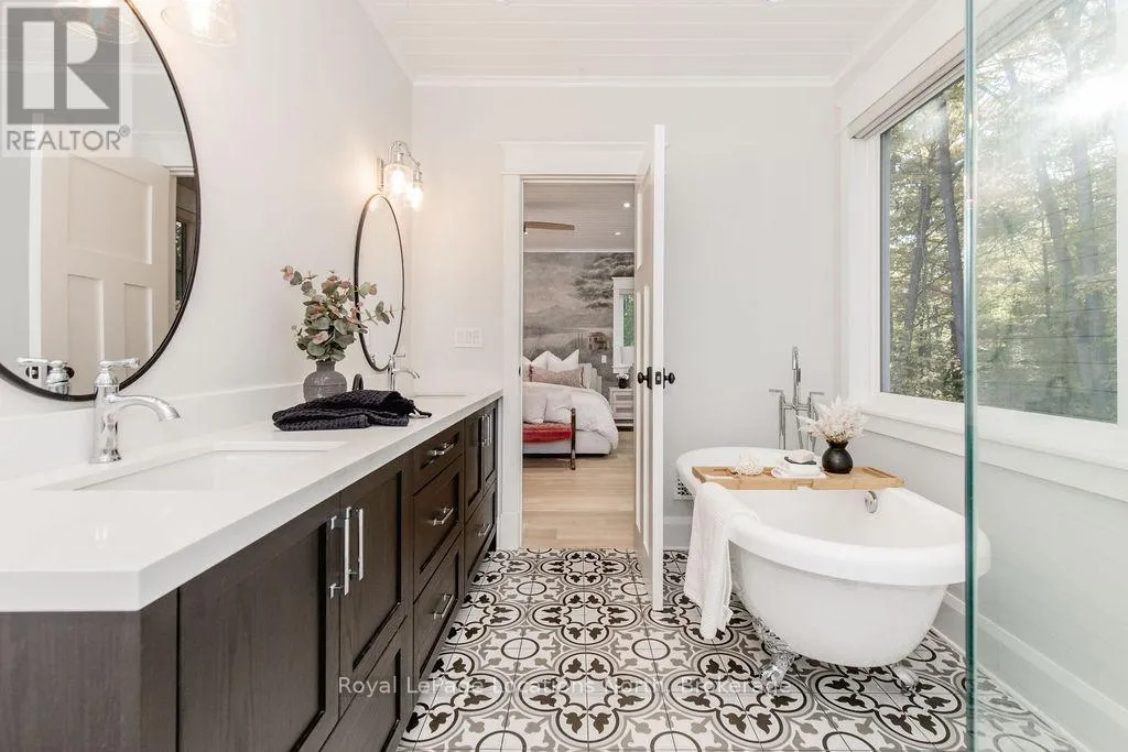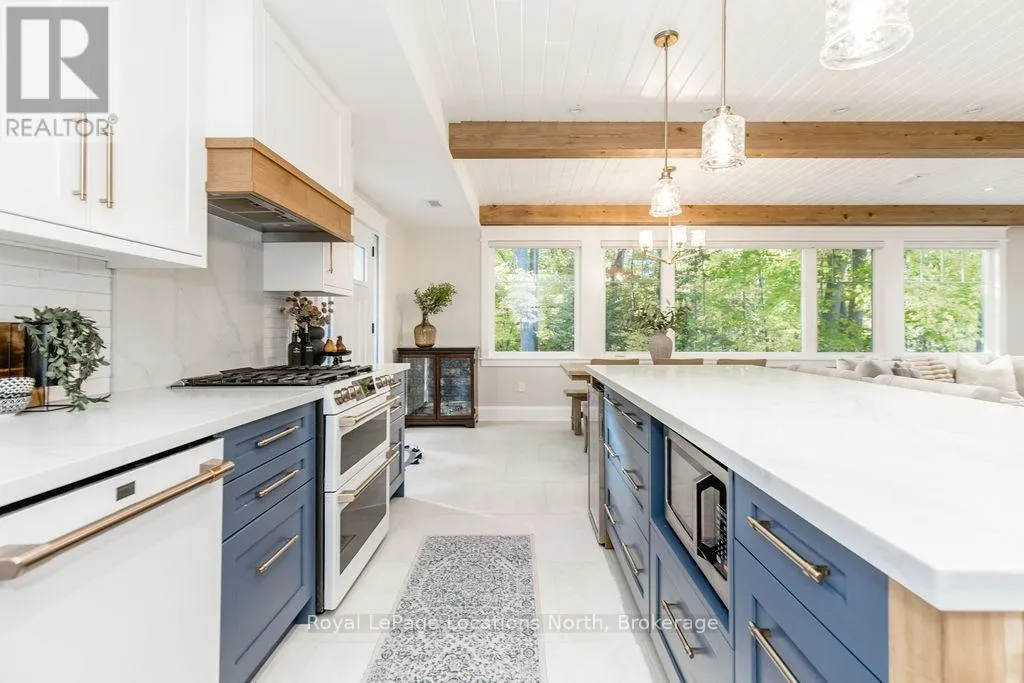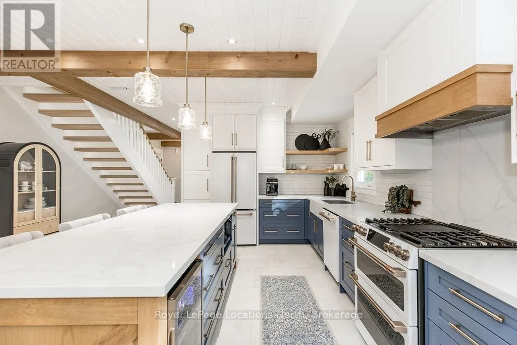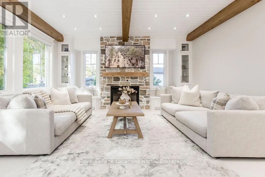 Cross Streets: Mosley Street and Oxbow Park Drive. ** Directions: Mosley Street to Oxbow Park Drive. DREAM HOME WITH HEATED DRIVEWAY & WALKWAYS - Welcome to this stunning, custom-built 3 bed, 3 bath home showcasing exceptional craftsmanship, built in 2023, perfectly positioned backing onto protected land & directly across from the river in beautiful Wasaga Beach. Designed w/ a mix of modern luxury & timeless character, this home captures a century-home feel with its large mouldings, custom doors & wood beams w/ a custom-built stone fireplace accenting the main floor.