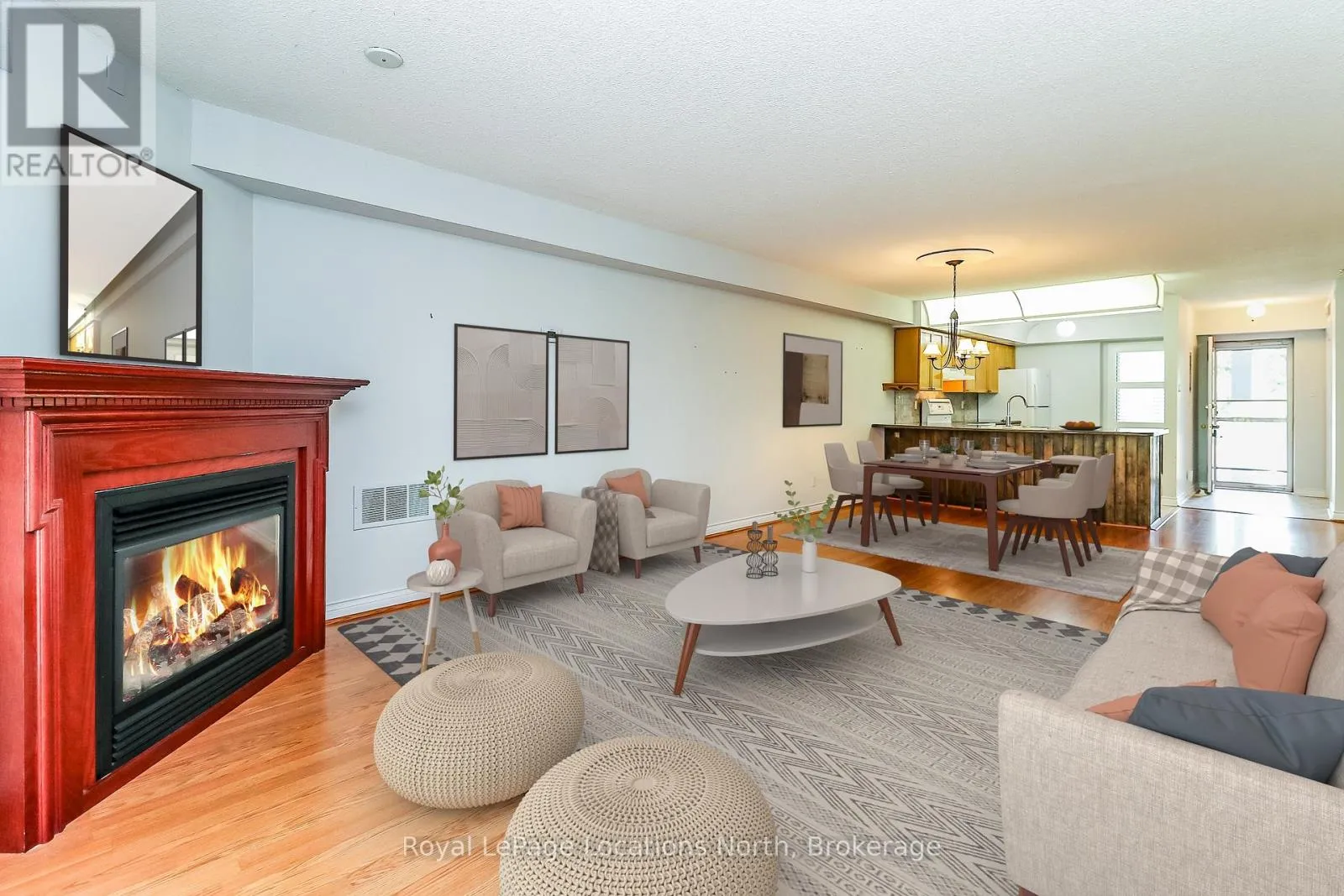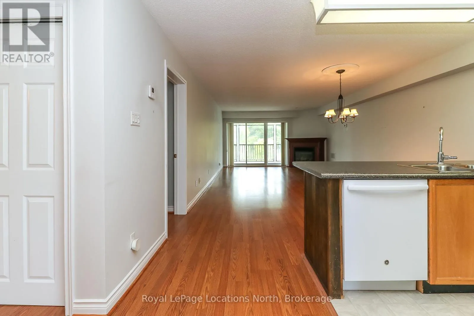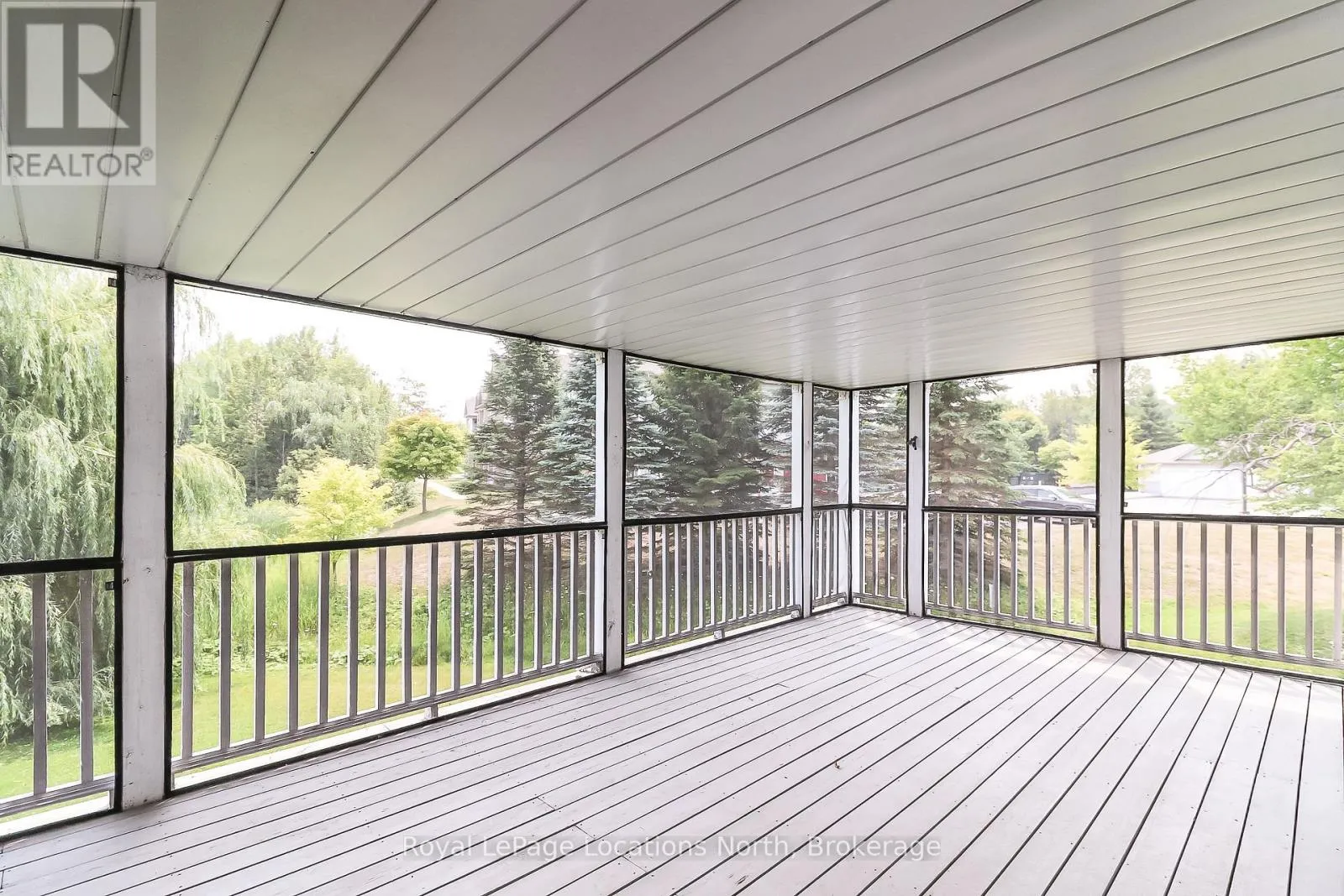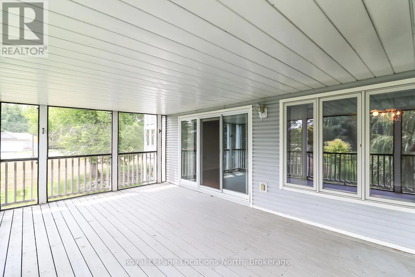At just shy of 1,200 sq. ft., this 2-bedroom, 2-bath condo offers a lot of space. You'll love the open-concept design of the kitchen (with breakfast bar) that overlooks both the dining area and the living room (with corner gas fireplace). This particular design also has a huge (13' x 21') covered and screened-in deck/balcony (accessed from the living room sliding glass doors), which also overlooks the private, mature-treed rear yard. There is also a set of stairs at the back of the building if you wish to easily walk your pet and/or wiggle your toes in the luscious, grassed area out back too. Laminate flooring adorns all rooms (except the kitchen, bathrooms, laundry & foyer), and other amenities of this condo include its own in-suite laundry with a new stackable washer/dryer, central vac, economical gas heat & central air-conditioning. This 2nd-floor "interior unit" has a condo above, below, and on each side of it, so it is also one of the most economically efficient (for heating and cooling) locations in the building. And speaking of great locations, this condo also has easy access to its front door thanks to the gently sloping ramp/stairs with only 5 gradual steps from the parking lot to the condo, so no long flight of stairs to navigate. Your designated parking spot is directly out front, with ample guest parking and a conveniently located mailbox nearby. The condo fees are $659.42/month & property taxes are $153/month. Located just a short drive from the sandy shores of the world's longest freshwater beach, this condo offers easy access to the Marlwood Golf Course and nearby walking & biking trails. You're also minutes from east-end Wasaga Beach amenities, including shopping, dining, the Stonebridge/Walmart commercial area, the new arena, and the library, making this quiet, well-connected location truly unbeatable. (id:27476)