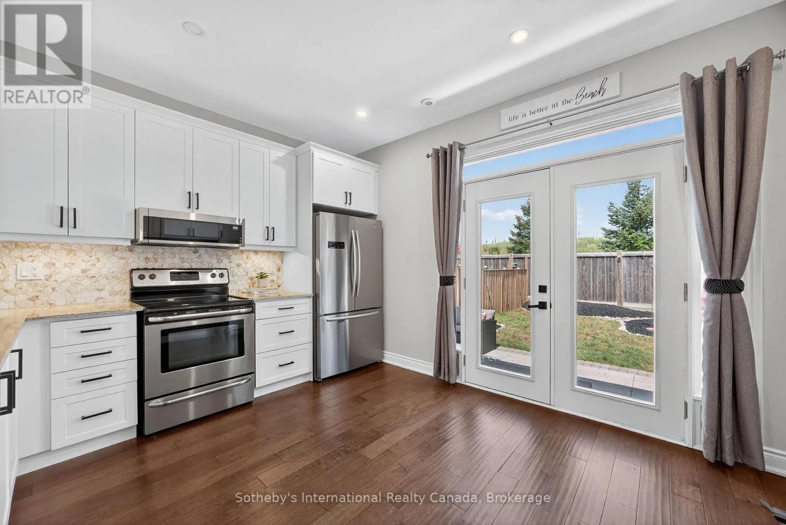 Cross Streets: Zoo Park Rd & Wally Drive. ** Directions: River Rd W to Zoo Park Rd to Wally Dr. Beautifully finished freehold semi-detached home in Wasaga Beach offering 2 bedrooms and 2 bathrooms and attached garage! Neutrally painted throughout with 9' ceilings and a spacious kitchen featuring an abundance of cabinetry, a quartz breakfast bar, tiled backsplash, stainless steel appliances and doors leading to a private fenced yard with patio area and shed.